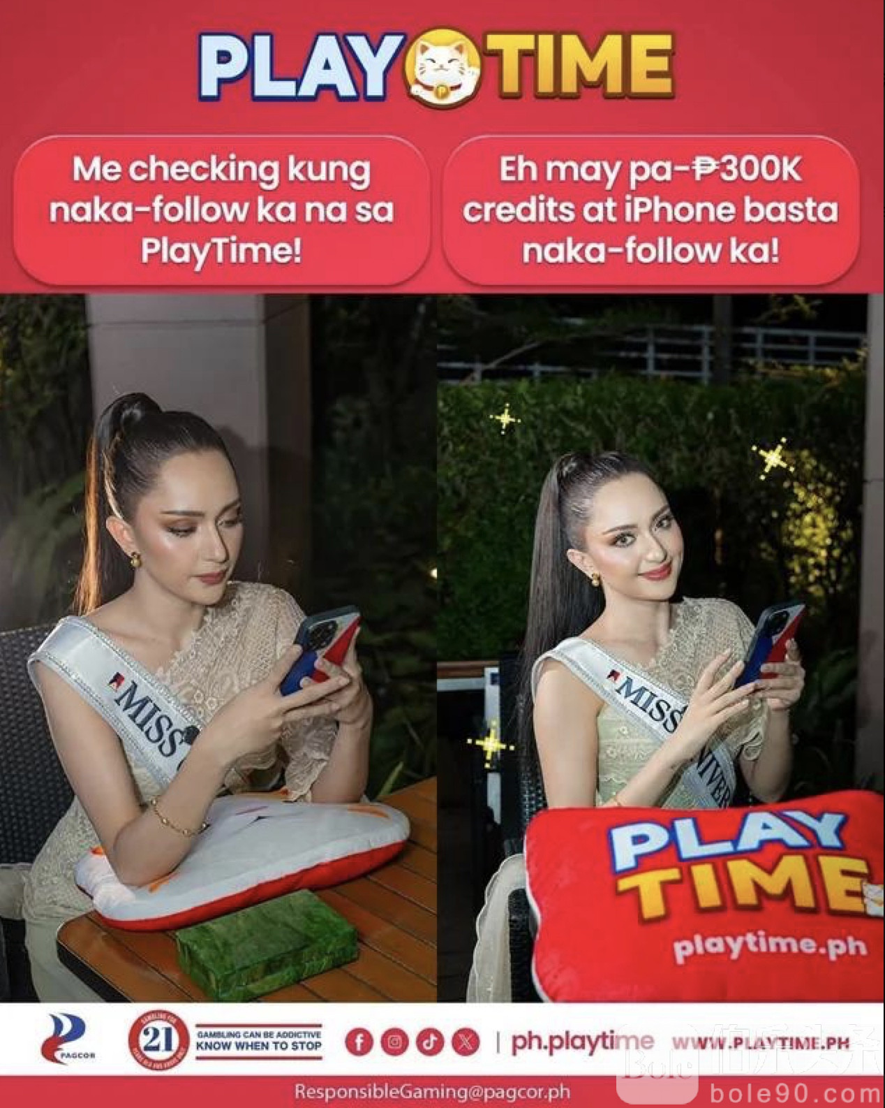 事件发生在上周日曼谷一家酒店的赛前活动中。据《The Thaiger》报道,环球小姐组织(MUO)一名工作人员 reportedly 要求菲律宾选手手持印有“Playtime”标志的抱枕拍照。该品牌是一家获得菲律宾PAGCOR许可的线上赌场,画面一度被上传至官方社交媒体,引发现场人员和酒店员工强烈投诉。