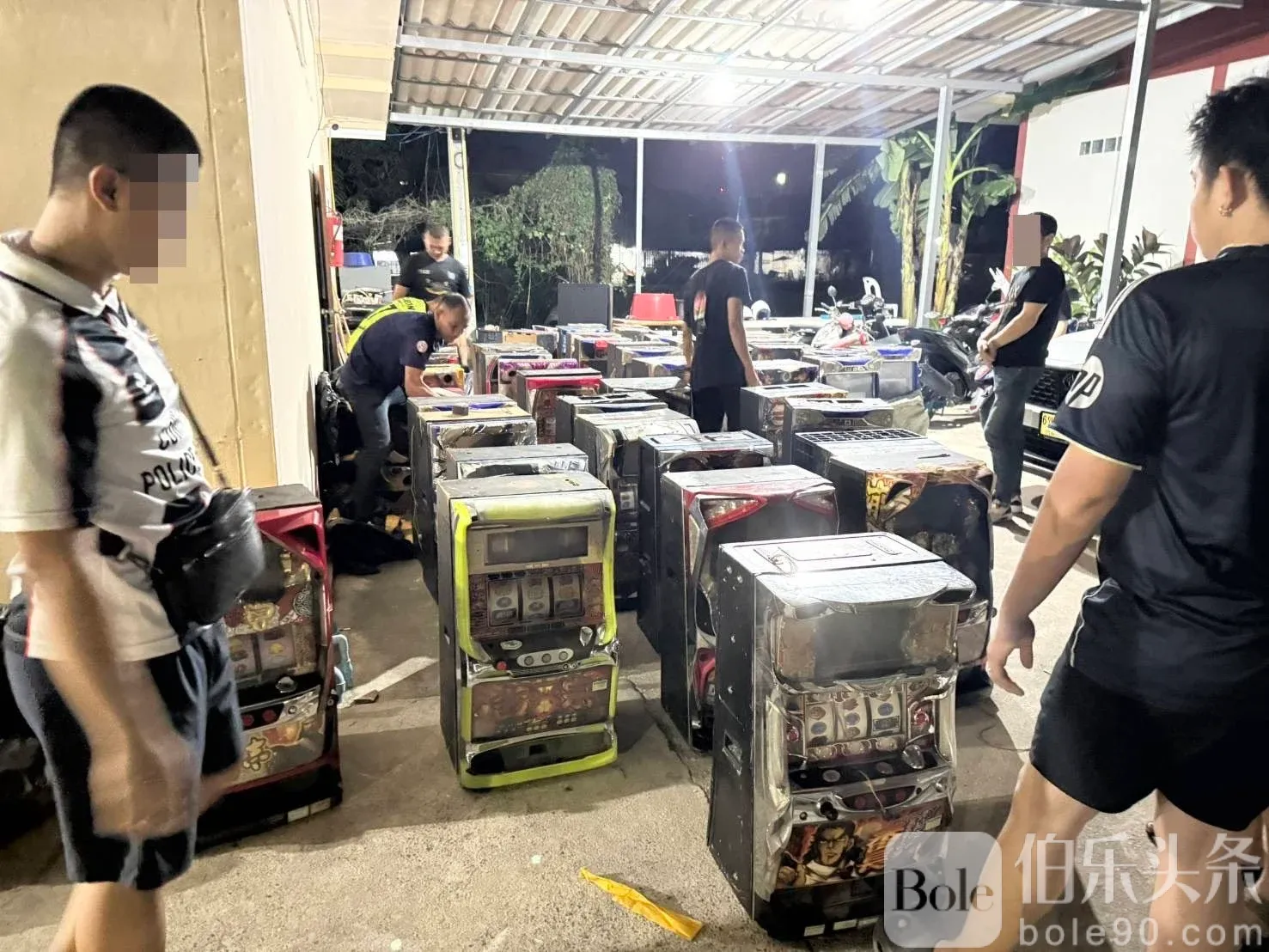 伯乐头条专讯:泰国警方近日在春武里府梭桃邑区破获一处藏匿“老虎机”的仓库,当场逮捕多名中国与泰国籍嫌疑人,并查获49台电动赌博机及多件电子设备。警方怀疑该团伙与境外电诈集团有关,疑似正准备在泰国设立新据点。