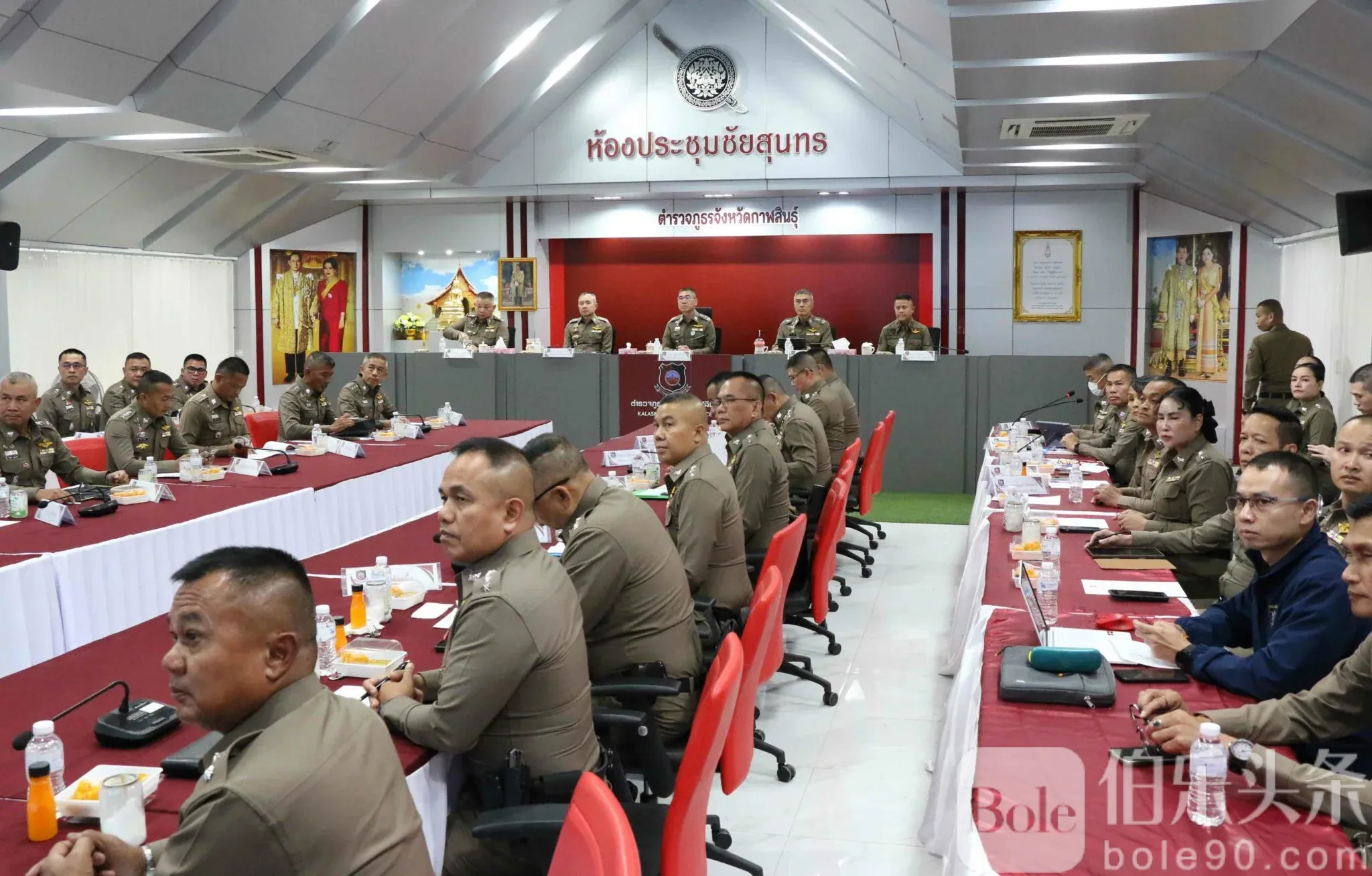 伯乐头条专讯:11月9日,泰国警察总督部指挥官“พล.ต.ท.สันติ ชัยนิรามัย”亲赴甘拉信府,对当地警察系统进行全面督导,并发布最新行动指令,要求全省各警局“全面扫描”,加速打击毒品、网络诈骗及各类犯罪活动。