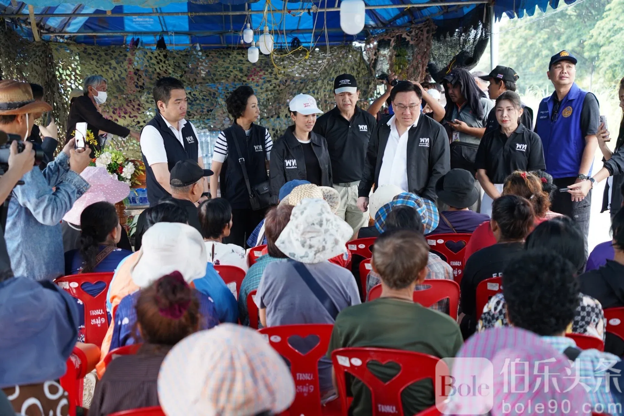 由前副总理、清迈府议员兼党首**朱兰攀·阿蒙威瓦(Julphan Amornwiwat)**率队,副秘书长琳迪蓬·瓦林瓦差隆(Lindiphon Warinwatcharoj)、副发言人帕育·怜章农(Phayu Nuangchamnong)及多名党籍议员共同参加。他们一行向灾民分发生活必需品、干粮与药品,并倾听受灾民众诉求。