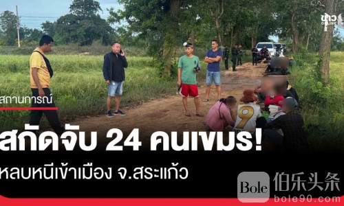 伯乐头条专讯:泰国萨拉开府(Sa Kaeo)警方与当地治安、边防及军方联合行动,于11日成功拦截24名企图非法入境的柬埔寨籍人员,事发地点位于塔帕雷亚区(Ta Phraya)的Ban Makok农业路段。