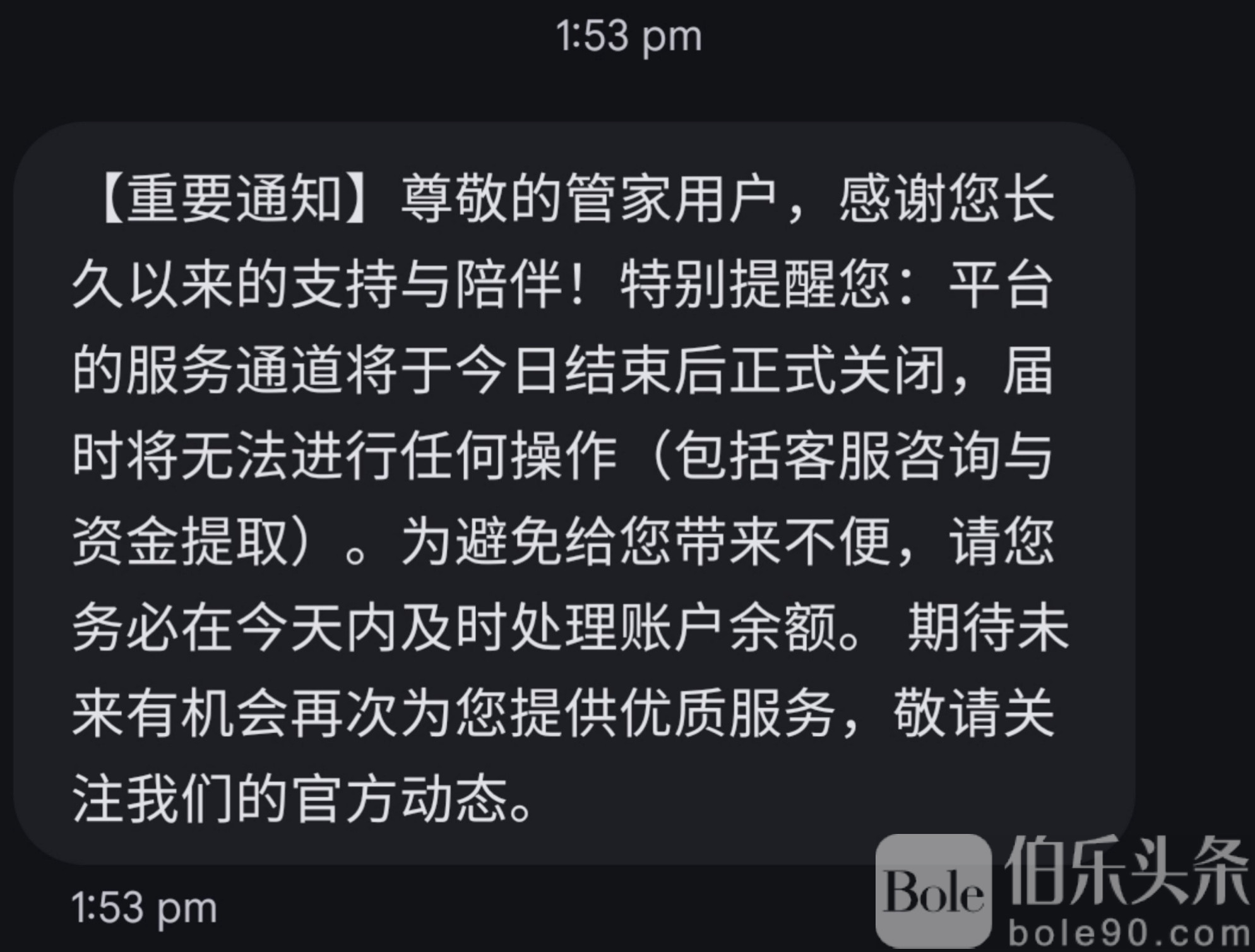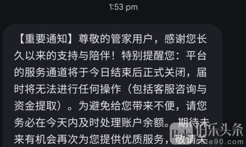 平台特别提醒用户务必在今日内完成余额处理,以免造成不必要的损失。官方同时表示,虽然“玖鼎”即将退出市场,但未来仍有可能通过新方式重新提供线上服务,并建议用户持续关注官方动态获取最新消息。