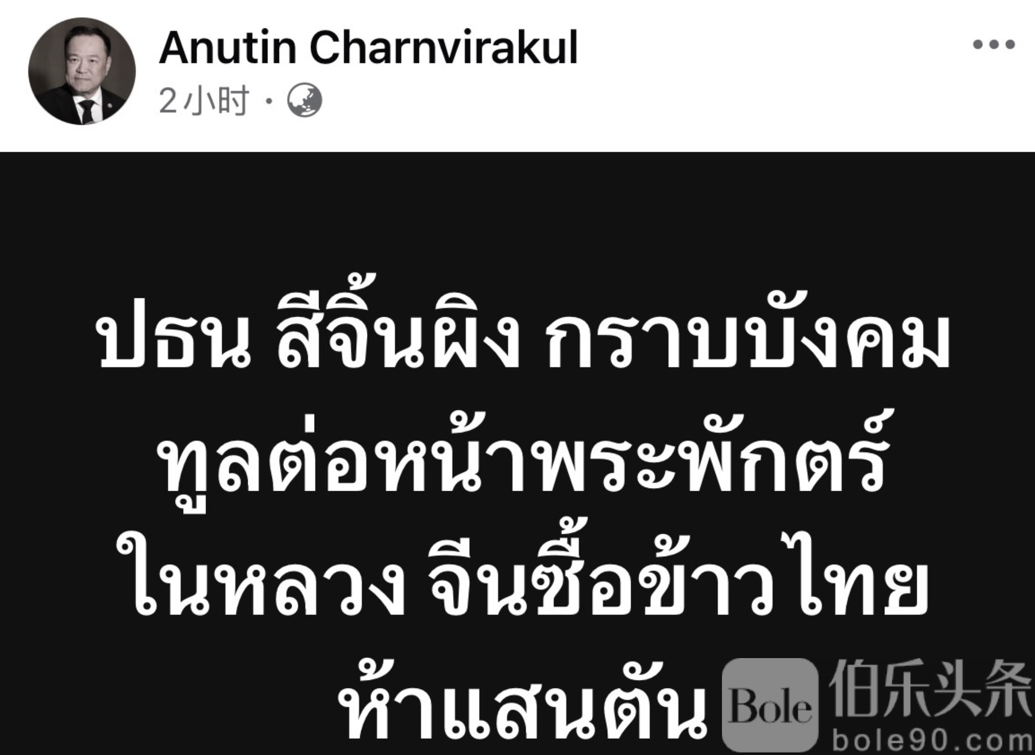 伯乐头条专讯:泰国总理兼内政部长阿努廷14日在个人 Facebook 上发文披露,中泰经贸合作迎来重大突破——中国国家主席习近平在泰国国王与王后面前正式承诺,中方将向泰国采购 50 万吨大米,消息引发泰国社会高度关注。
