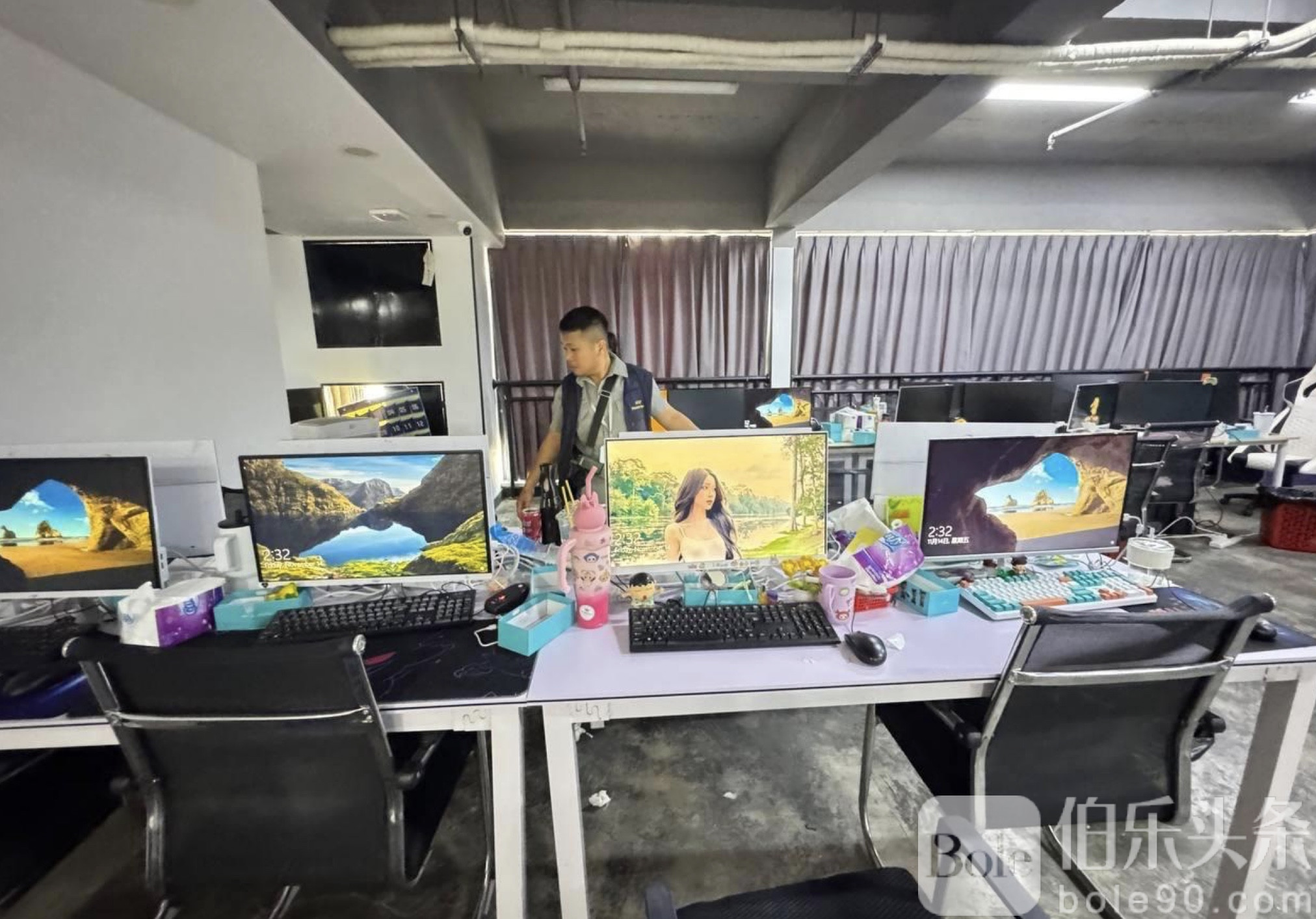 行动中,警方从现场搜出数量惊人的电子设备,包括 168台台式电脑(一体机)、6个CPU主机箱、35台显示器以及 600部手机,设备数量之多,让办案人员直言规模不小。