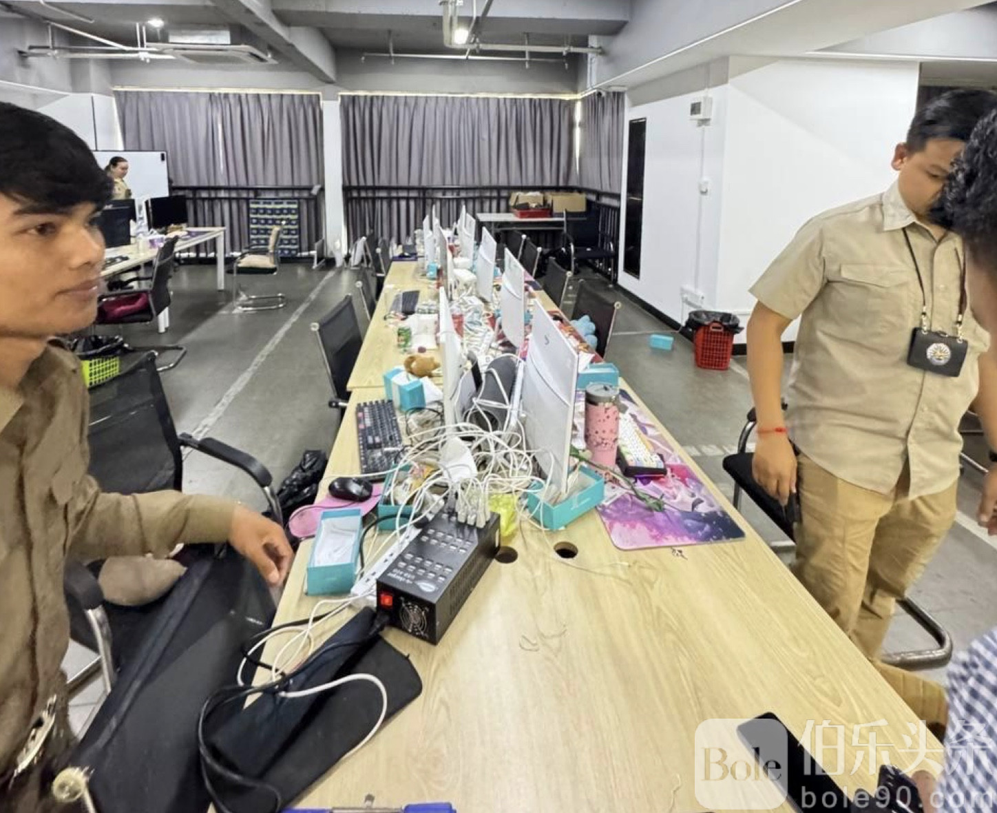 伯乐头条专讯:柬媒消息称,柬埔寨国家警察总署联合金边市警方,于昨日突袭桑园区知名建筑——粤泰大厦(Yuetai Building),成功捣毁一处涉嫌从事电信诈骗的窝点。
