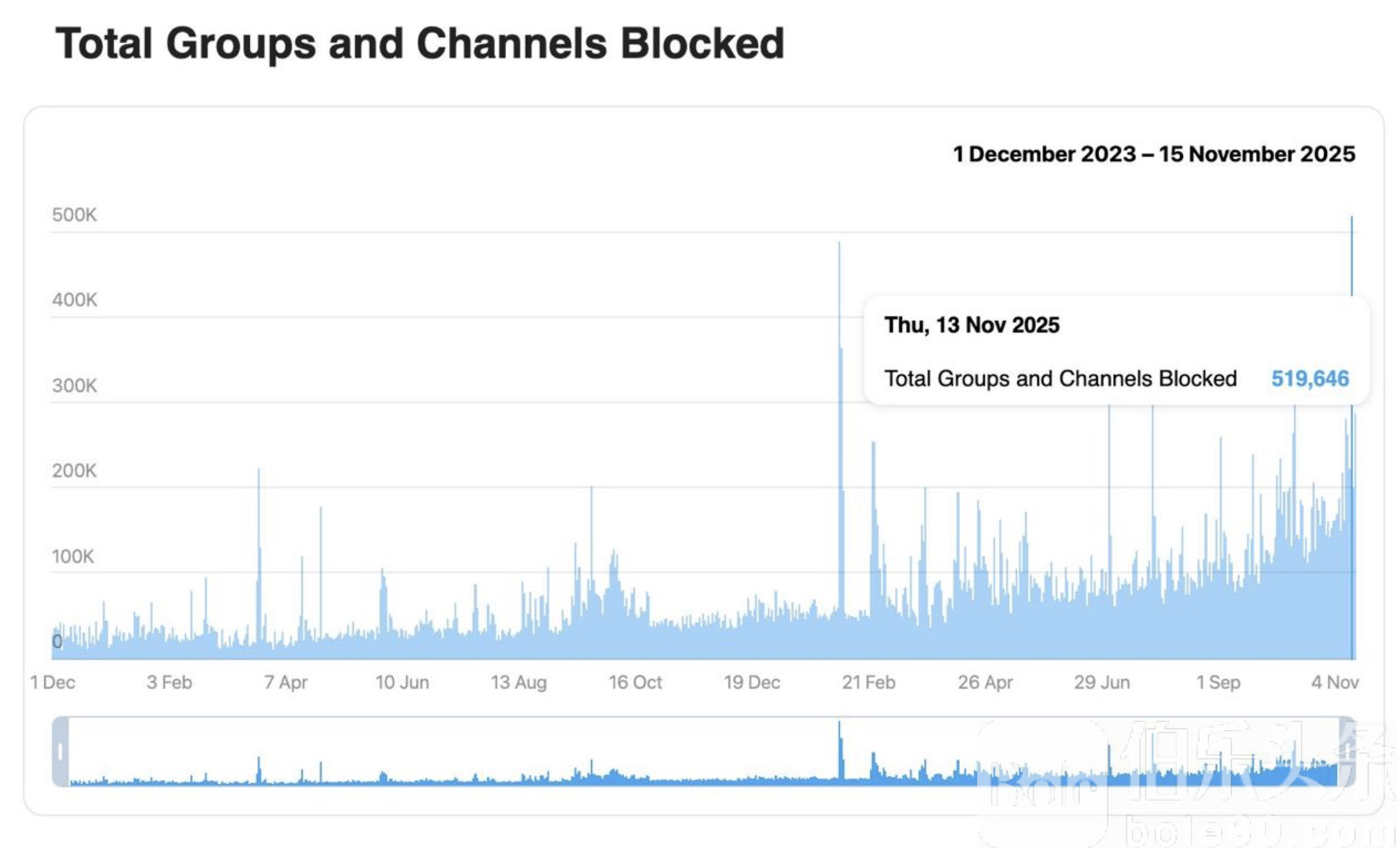 伯乐头条专讯:近日,社交平台Telegram在单日内封禁了519,646个群组和频道,创下平台历史最高纪录。这次大规模清理行动引发全球用户关注,尤其是各类公开及私密频道管理者和成员。