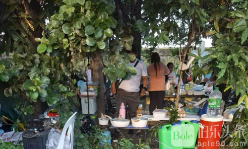 大量家庭背着帐篷、食物、鸡蛋、锅碗瓢盆,有的甚至带着柴油发电机,明显准备在这儿“住下三天”。沿路更是摊贩成排,从炸鱼丸、炸鸡肉到烤鱼干、榨汁、糯米糕,一应俱全,活脱脱变成了一个巨型夜市。