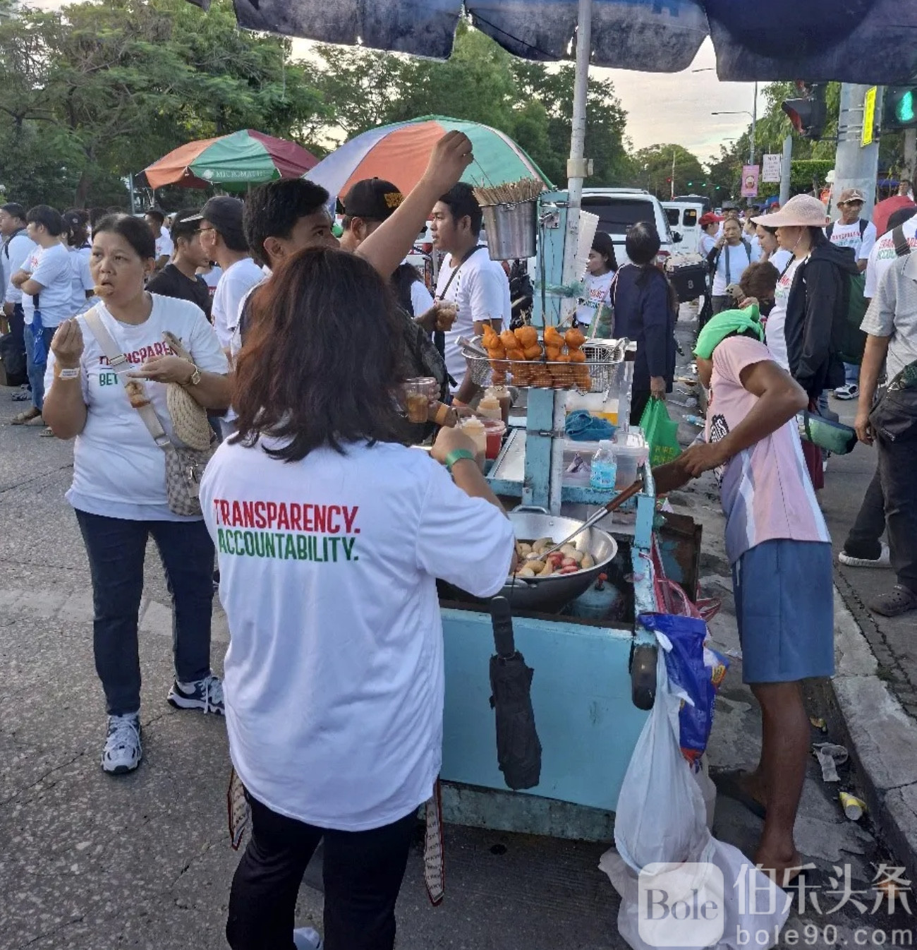 11月16日是这场反贪示威活动的第一天。本以为只是普通规模,没想到从我走上塔夫脱大道那刻起,景象直接让我愣住——道路完全堵死,成群身穿白T恤、背后写着“为了更透明的民主制度”的菲律宾人,从四面八方涌向黎刹公园。