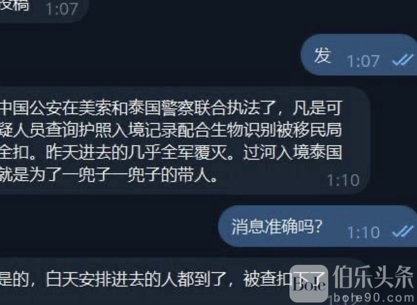 伯乐头条专讯:泰缅边境美索(Mae Sot)17日起突然进入“铁桶式”执法状态,中国公安与泰国警方在当地启动联合行动,对所有可疑入境者实施护照核查与生物识别比对,凡是来源不明、活动反常或记录可疑者,全部被移民局当场扣留。