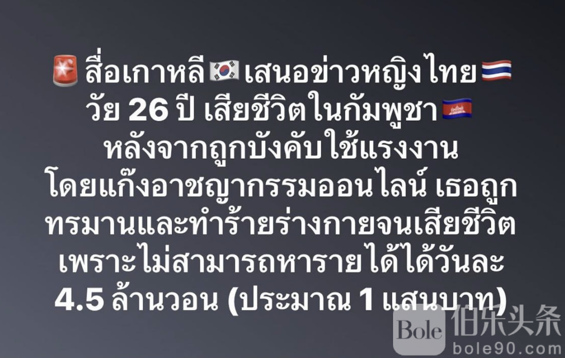 伯乐头条专讯:柬埔寨波贝近期再曝网络诈骗园区虐待事件,一名26岁泰国女子因无法完成每日业绩被强迫劳动、殴打致死,引发社会关注。据报道,该女子在柬埔寨金边一座寺庙被发现死亡。事发后,专门协助诈骗受害者的Emmanuel基金会及时介入,阻止寺庙火化遗体,并向当地当局报案,要求对死因展开调查。目前,遗体已由泰国驻金边大使馆接管,正在协调将其运回泰国。