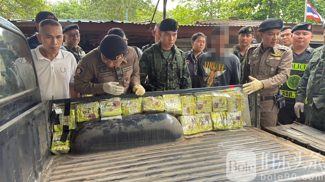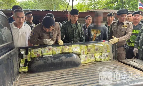 伯乐头条专讯:泰国西部警方截获改装皮卡,查出冰毒 95 公斤,黑市价逾 1 亿泰铢。泰国西部安全力量再度出重拳。11月18日,警方在功卡侬府(甘加那汶里)靠近缅甸边境的检查点成功拦停一辆可疑皮卡,现场查获经特别改装的车体暗仓,内藏冰毒 95 公斤,黑市总值超过 1 亿泰铢。