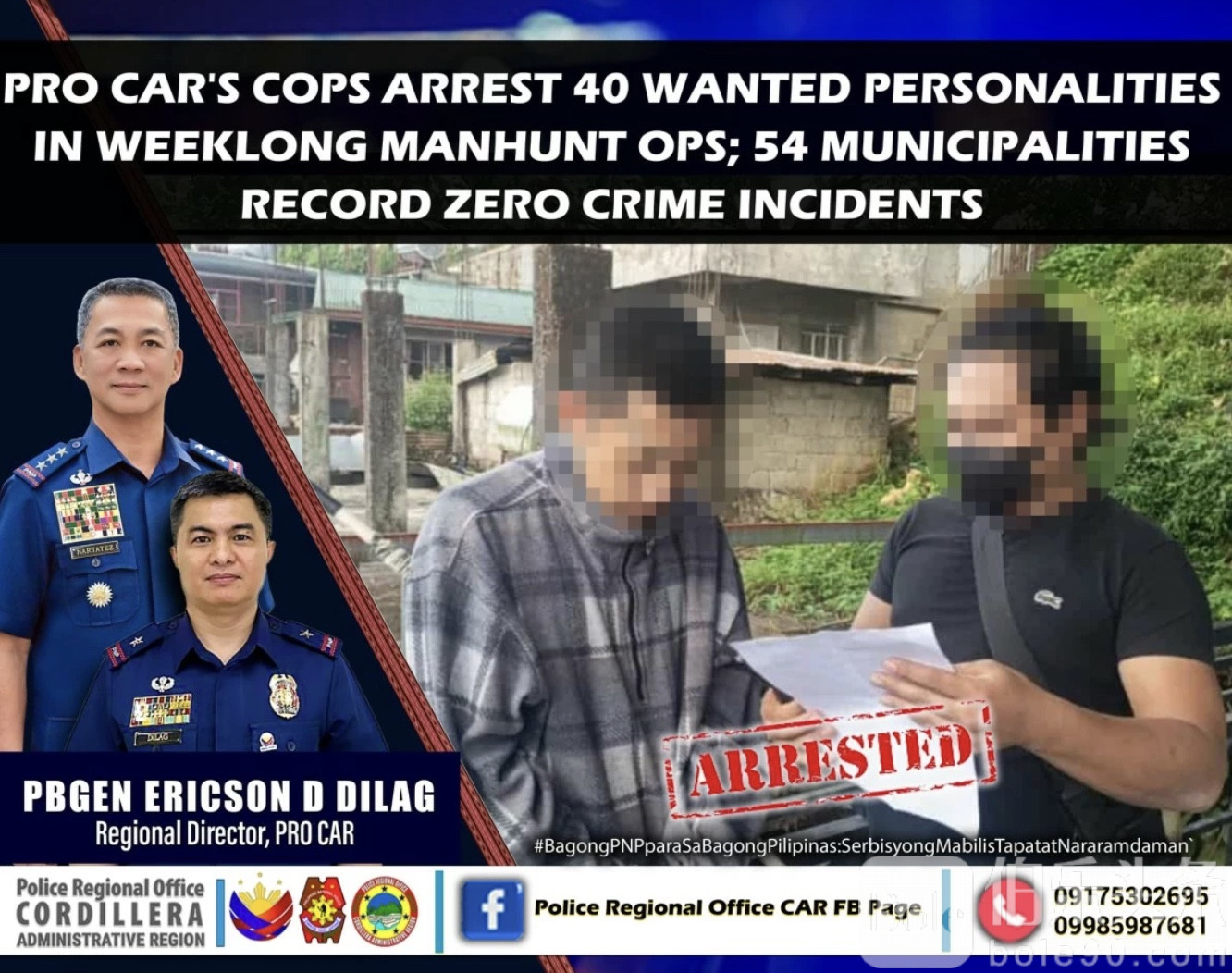 伯乐头条专讯:菲律宾科迪勒拉地区警方近日展开大规模行动,于11月9日至15日期间抓获40名通缉犯。根据科迪勒拉行政区警察局(PRO-Cordillera)通报,碧瑶市警局抓获11人,本格特省警局10人,伊富高省警局9人,卡林加省警局4人,山区省警局3人,阿布拉省及阿帕约省各抓获1人。
