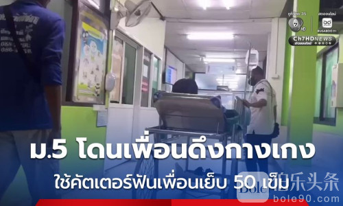 伯乐头条专讯:泰国一所中学发生惊悚校园暴力事件,一名高二男生因被同班同学开玩笑拉下裤子,愤怒之下持美工刀反击,将同学砍伤多处,送医后共缝合50针。事故发生在11月19日中午,地点位于柴桐沙县(Sanam Chai Khet)一所中学内。