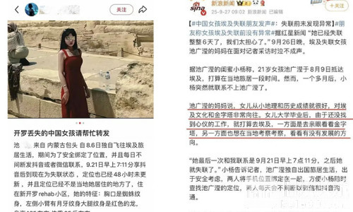 · 9月21日,她与国内联系断绝,家人发出寻人启事。