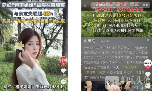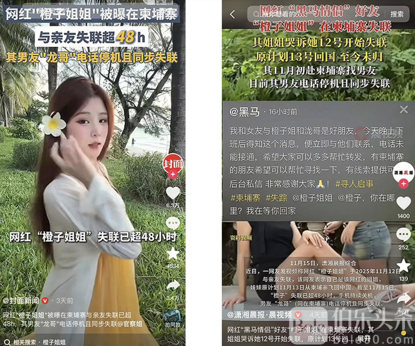 伯乐头条专讯:11月中旬,网络上出现一个令人揪心的画面:中国网红“橙子姐姐”(真名张慕澄,26岁)在柬埔寨“失联”,家人发布寻找视频和寻人帖,粉丝焦虑刷屏。她原本安排在 11 月 13 日从柬埔寨返回,但从 11 月 12 日起,她的手机关机,与家人断联。姐姐在社交平台痛哭发声,大家担心她出事了。