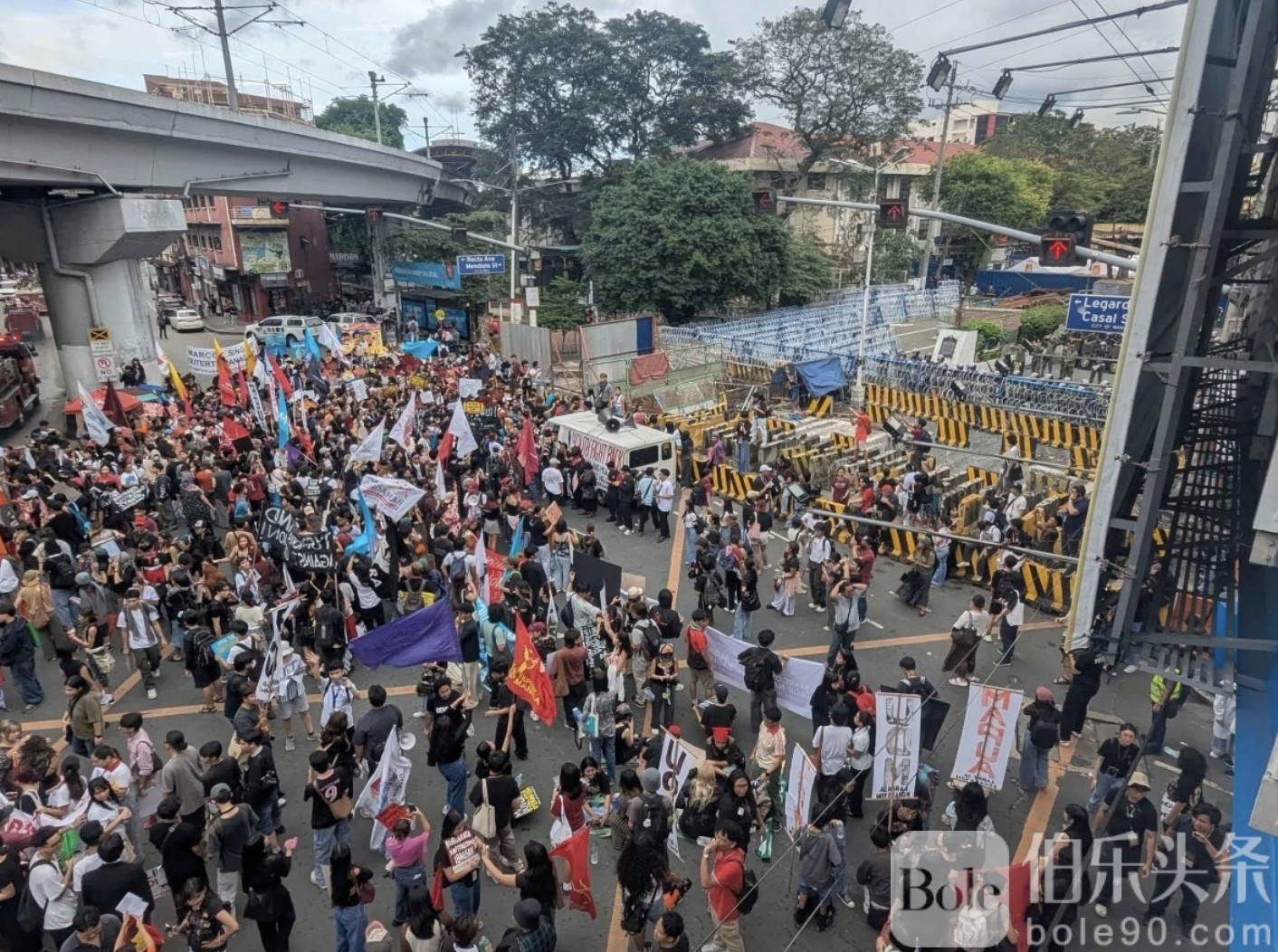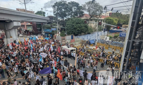 伯乐头条专讯:11月21日,菲律宾马尼拉门迪奥拉,来自各大学校的学生团体及进步青年组织集结发起“闪电抗议”,要求总统小马(Ferdinand “Bongbong” Marcos Jr.)和副总统小杜(Sara Duterte)立即辞职,并追究所有涉及国家腐败官员的责任。示威者高喊口号,呼吁政府为泛滥的腐败行为付出代价,并改善因政治黑幕带来的民生困境。