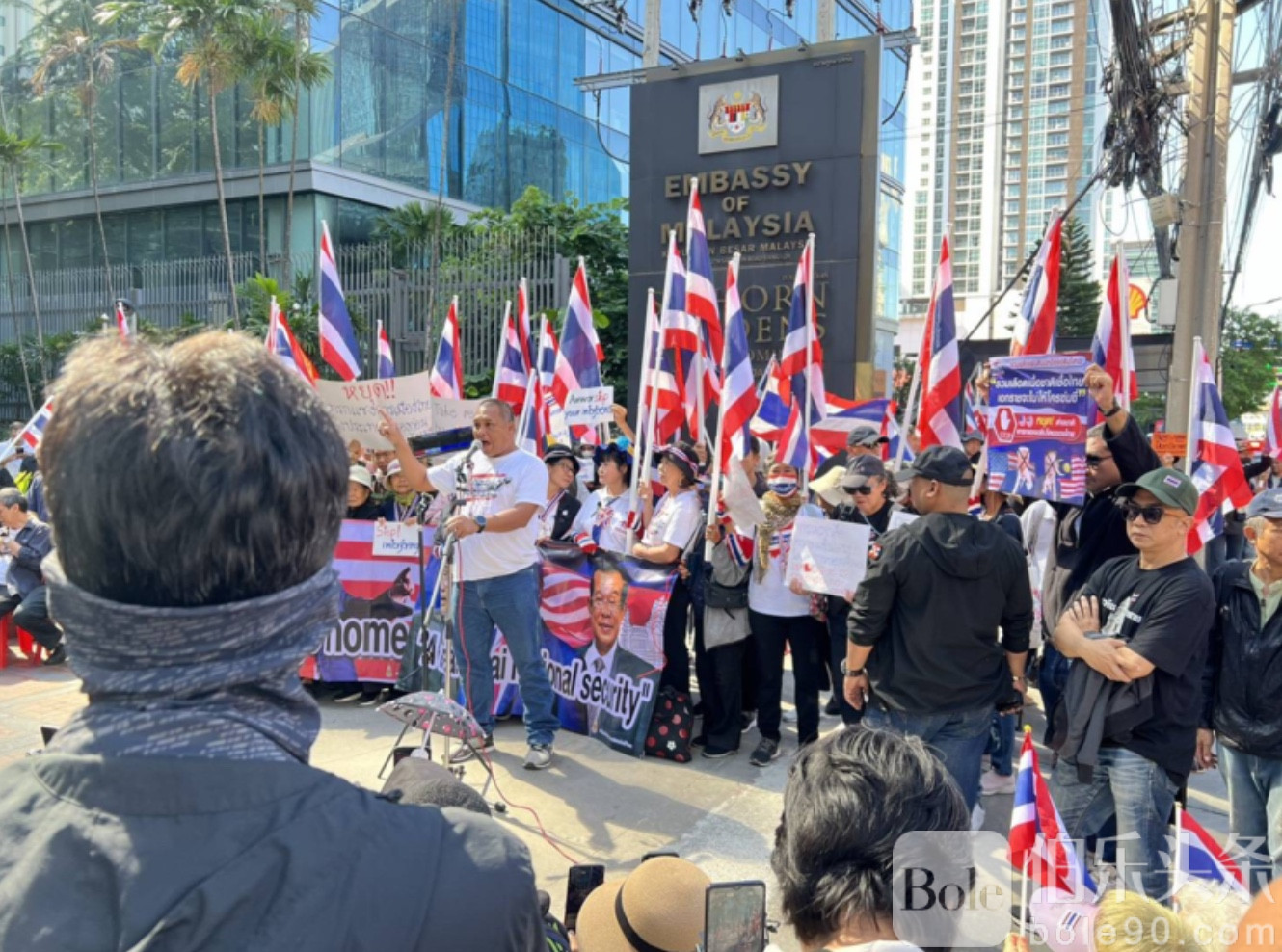 抗议行程预计将持续至下午,示威者宣布将从马来西亚大使馆继续前往美国大使馆,要求美国“停止介入泰国事务”。