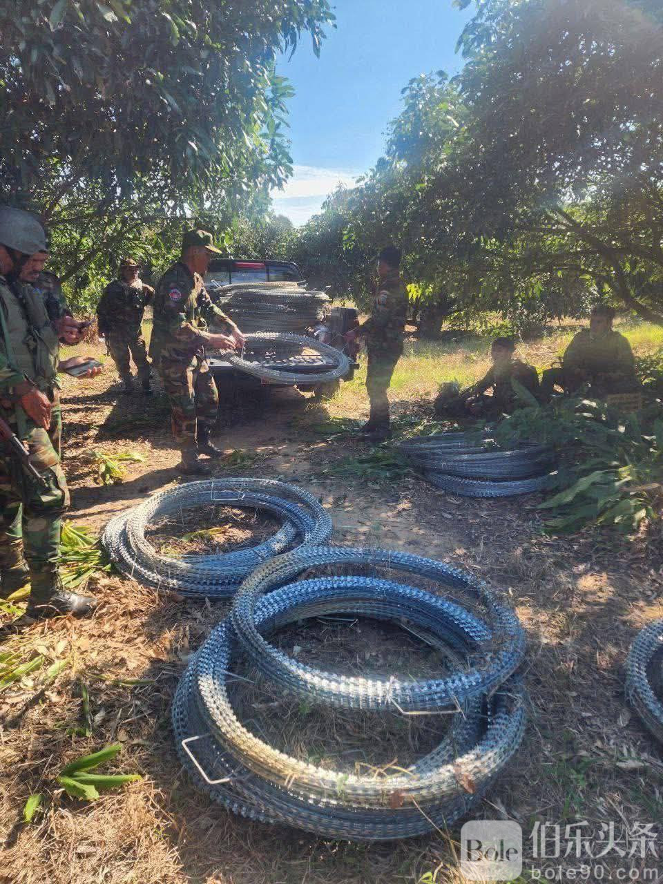 伯乐头条专讯:柬泰边境奥斯玛口岸传出最新消息,柬方执法人员近日在边境巡查中,收缴了泰国士兵秘密准备的铁丝网。据了解,这批铁丝网原本秘密准备在靠近交界线的位置,随后被柬方发现并立即移除。