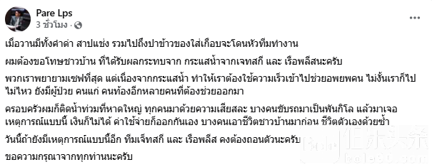 哥派补充,自己家人在合艾同样遭洪水围困,他深知灾民焦虑,但仍希望各方保持冷静,为救援工作留出空间,让更多受困者能安全撤离。