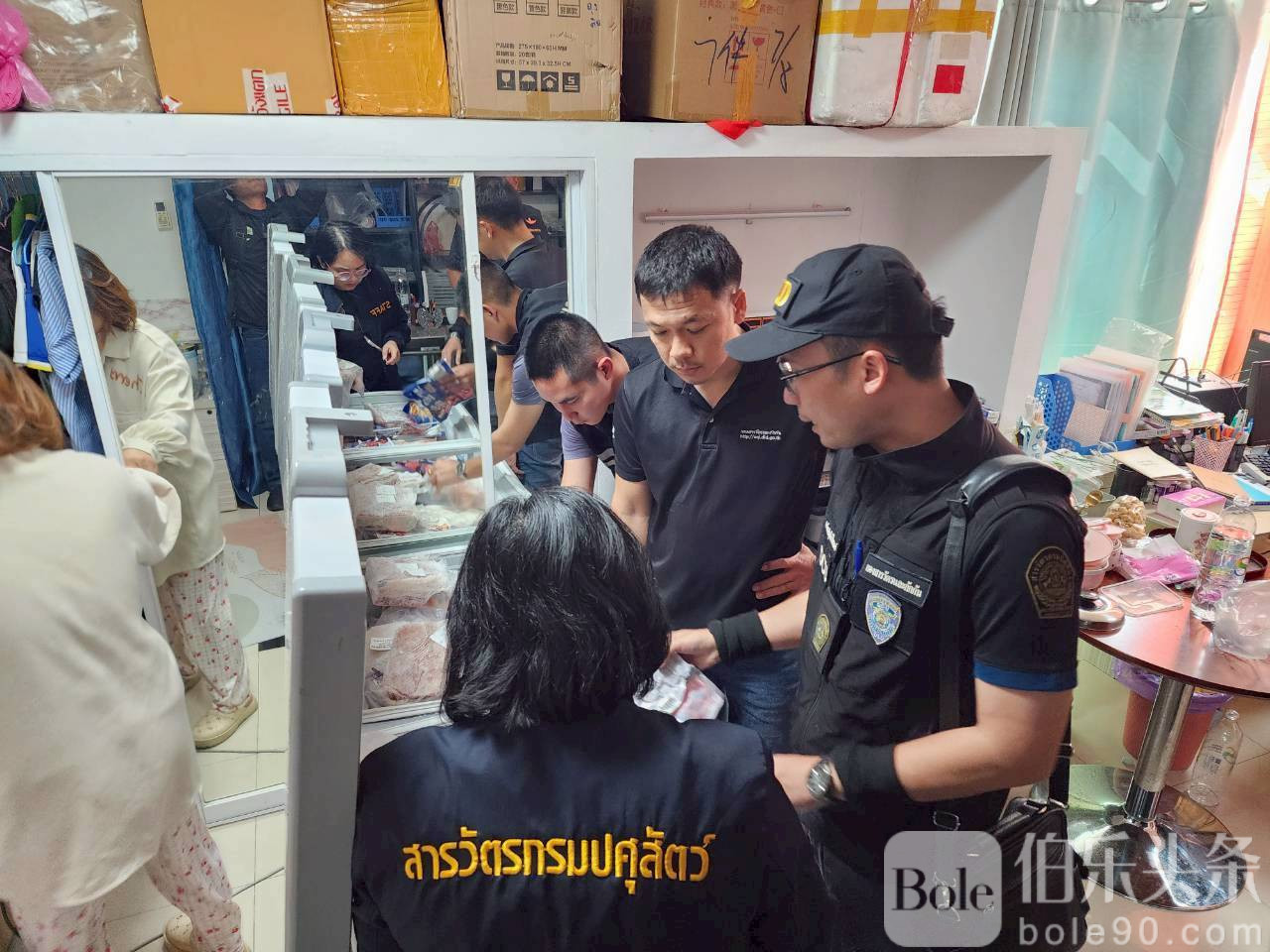 伯乐头条专讯:泰国曼谷警方在联合行动中成功瓦解一条非法走私动物制品链条,查获超过622公斤来源不明的冻肉,并逮捕一名49岁中国籍男子。涉案物品估值逾100万泰铢。