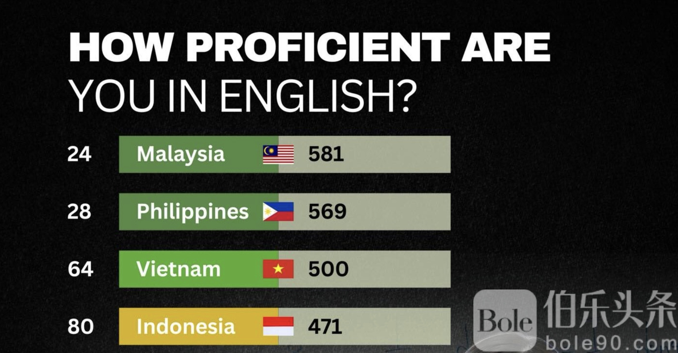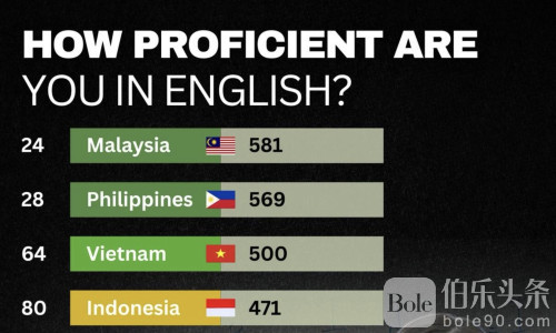 伯乐头条专讯:最新公布的《2025年EF英语能力指数》为东南亚国家的英语实力重新排位。马来西亚、菲律宾与越南成为本年度区域表现最强的三国,其中马来西亚以581分稳居东南亚第一,并跻身全球“高水平英语能力”国家之列。菲律宾则以569分继续保持其传统优势,稳居区域第二;越南则以500分排名第三,展现教育体系持续进步与国际沟通能力的明显提升。