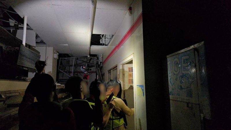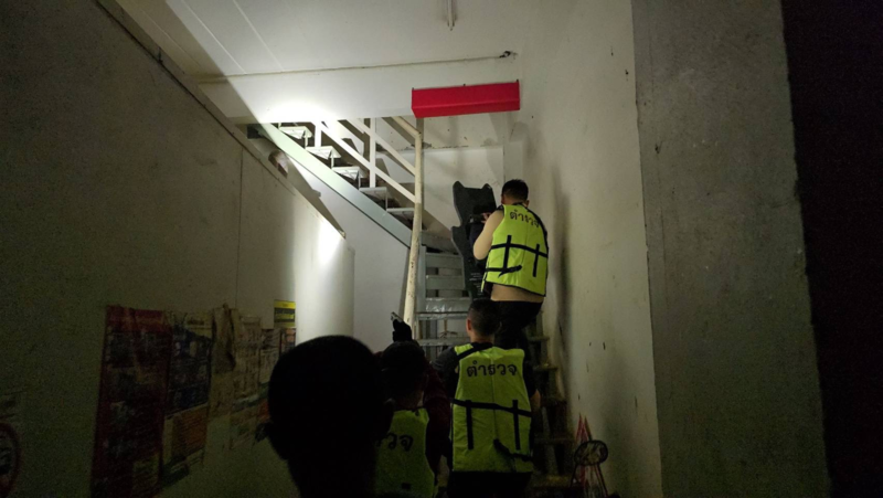 接警后,来自泰南沙道府「泰境特警 54 行动组」立即穿着救生衣、携带武器与防暴盾牌,涉入积水区展开突击。特警在现场对这栋三层商住式建筑进行全面搜索,一楼为便利店,二三楼为住处。进入店内后,警方看到货物被翻得一片狼藉,但匪徒已提前逃离。