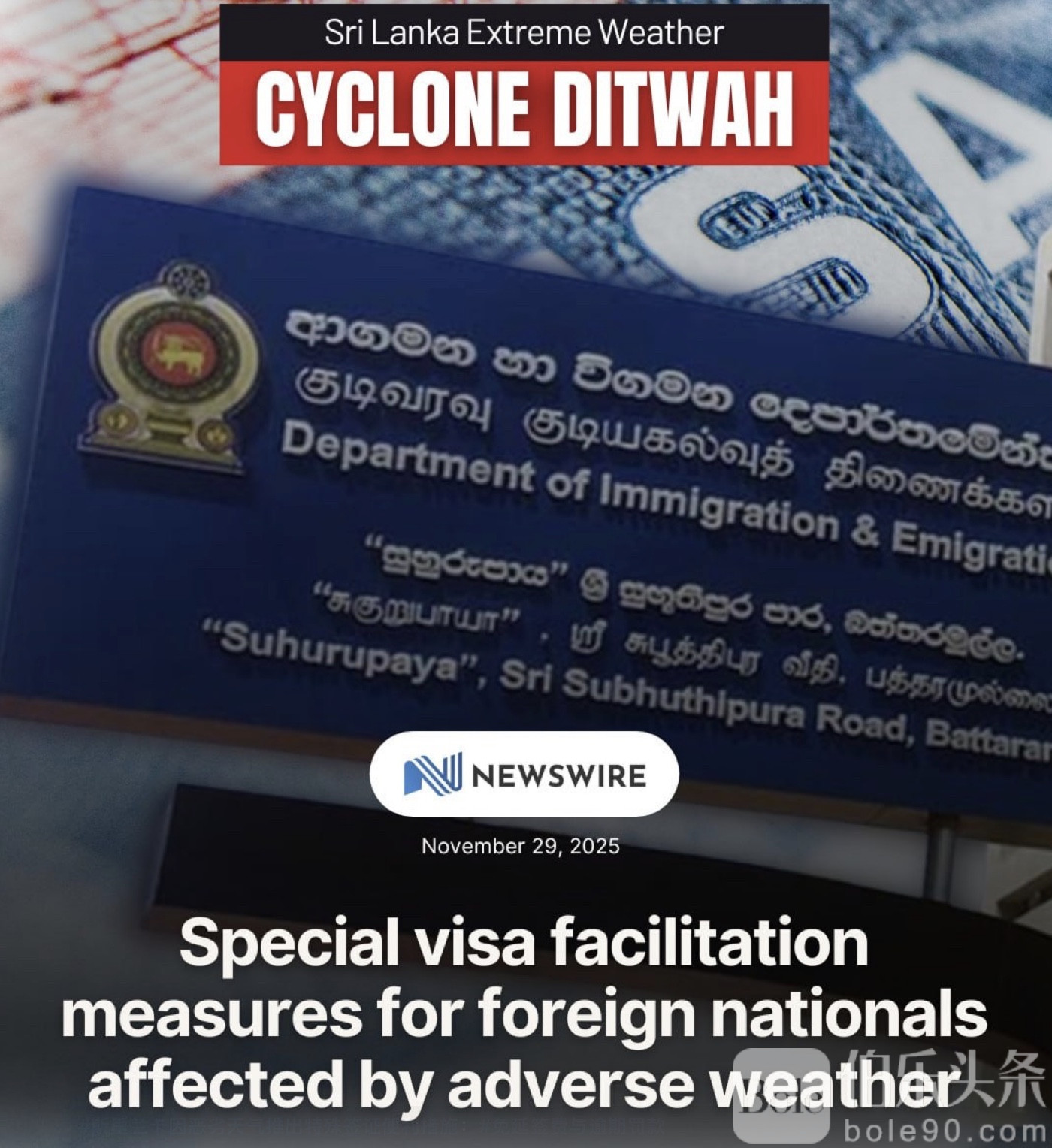 伯乐头条专讯:近日,斯里兰卡移民与出入境事务局宣布,因持续恶劣天气导致境内外籍人士行程受阻,将临时实施特殊签证便利措施。根据公告,受影响的外国公民可免除签证延长费用及逾期停留罚款,同时短期旅游签证、短期商务签证以及居留签证持有人可获得7天宽限期,以完成相关延签或签证手续。