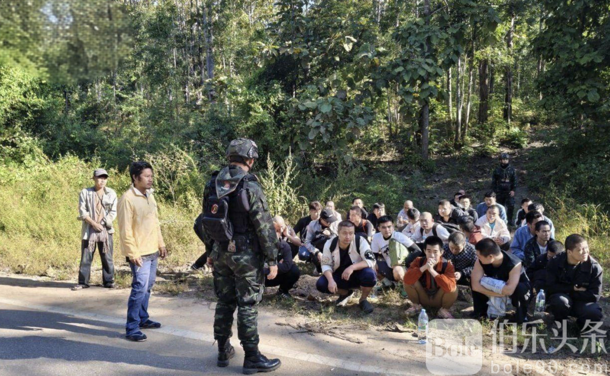 伯乐头条专讯:今日,泰国军方在达府湄索县一带再次截获一批从缅甸妙瓦底方向偷渡入境的外国人,总计44人,其中41人为中国籍,其余3人分别来自埃塞俄比亚、尼日利亚和马来西亚。官方证实,这些人都是从克伦族民主军(KNU)控制区内的诈骗园区逃出后试图非法入境泰国。