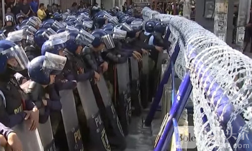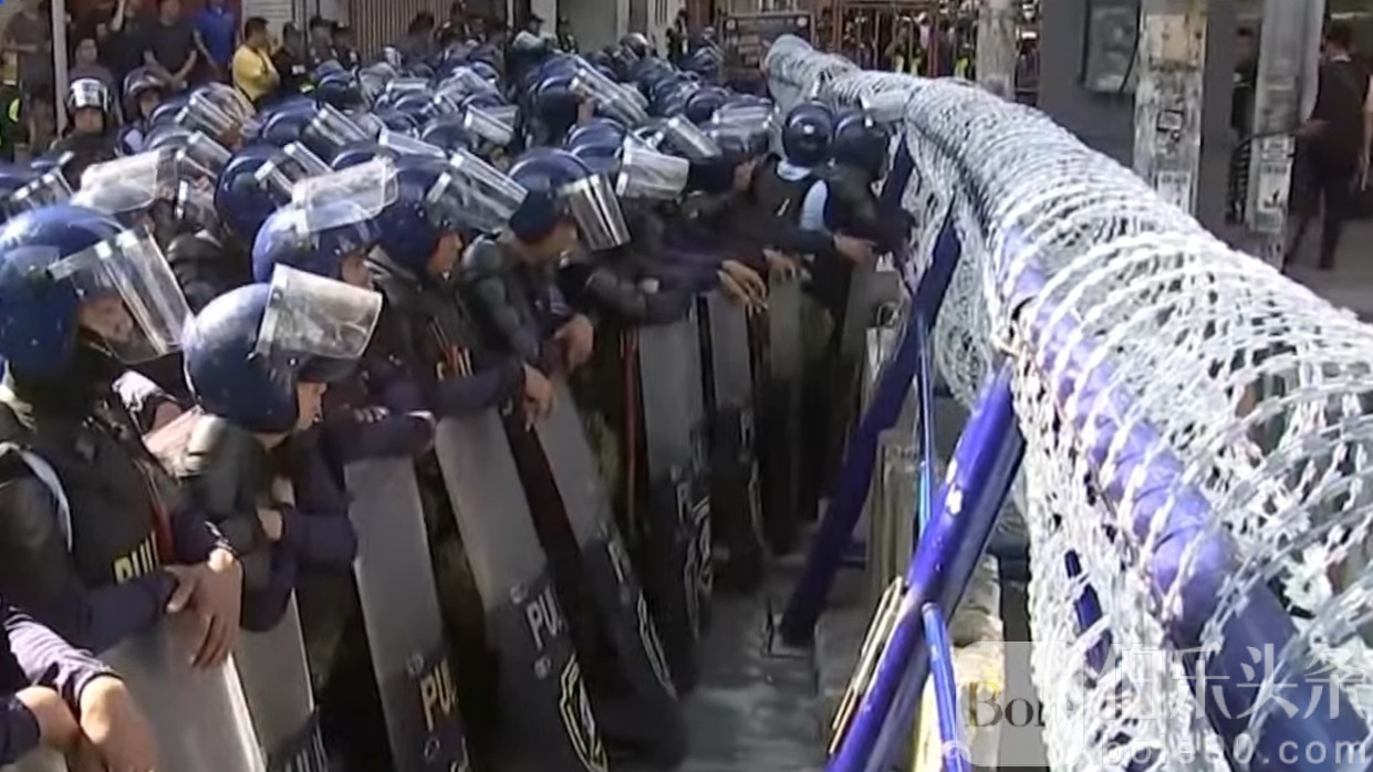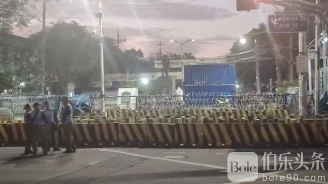 伯乐头条专讯: 菲律宾马尼拉门迪奥拉街30日清晨起进入高度戒备状态,大批警力、铁丝网、混凝土障碍物与集装箱被层层布设,严密封锁通往马拉坎南宫的要道。当天,马尼拉及大马尼拉地区多地均举行反贪腐示威活动,警方为防止重演先前冲突,提前加强部署。