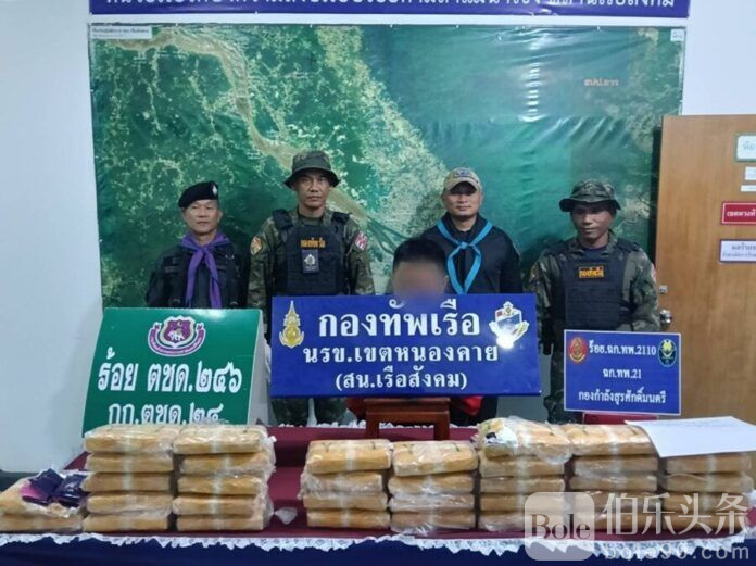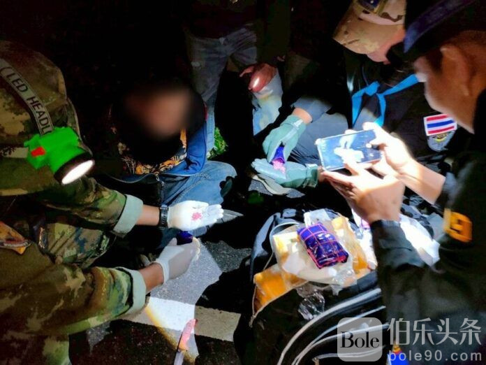 伯乐头条专讯: 泰国缉毒单位在乌隆他尼—廊开交界一带展开边境肃毒行动时,成功查获超过20万颗冰毒并逮捕一名涉案嫌犯。整起案件源自情报单位通报,指在公路旁一处旅游地标附近出现可疑黑色行李袋,疑似藏有毒品。