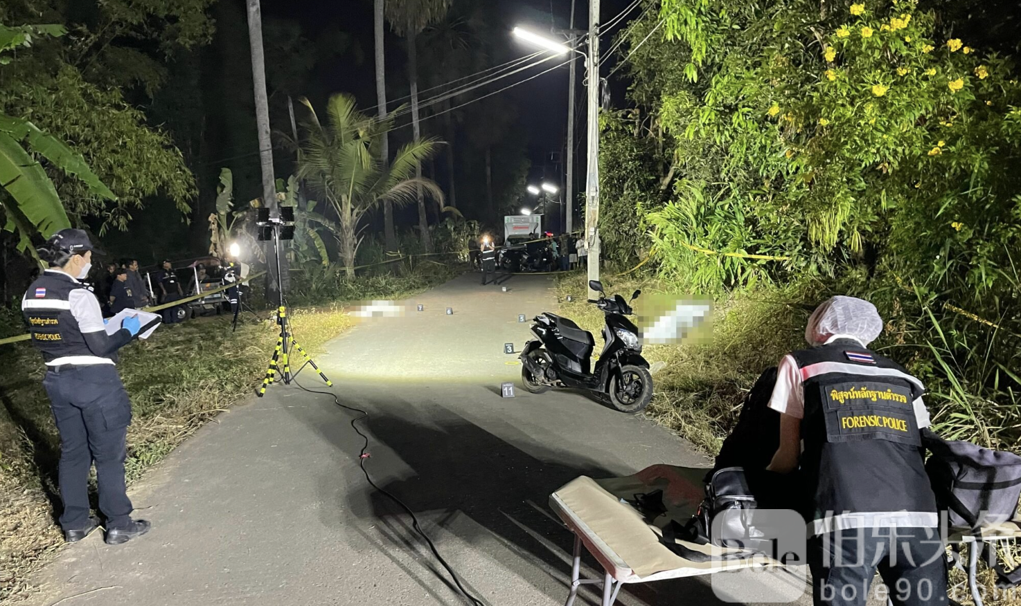 伯乐头条专讯: 泰国差春骚府帕农沙拉堪县 11 月 29 日晚发生一起震惊当地的枪击命案,两名仅 17 与 19 岁的少年在村道旁遭人以 9 毫米手枪连射至少 10 发,当场身亡。警方连夜封锁现场并展开追缉。