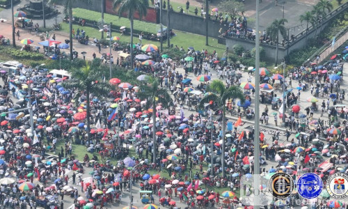 根据马尼拉市警局(MPD)提供的现场估算数据,尽管开场受阻,活动正式开始时仍已有约3,000名参与者到场。人群来自青年组织、教师团体、医护联盟、宗教机构、工人和农民协会及环保组织等多个阵营,多支队伍自不同集合点步行进入公园,展现高度动员能力。