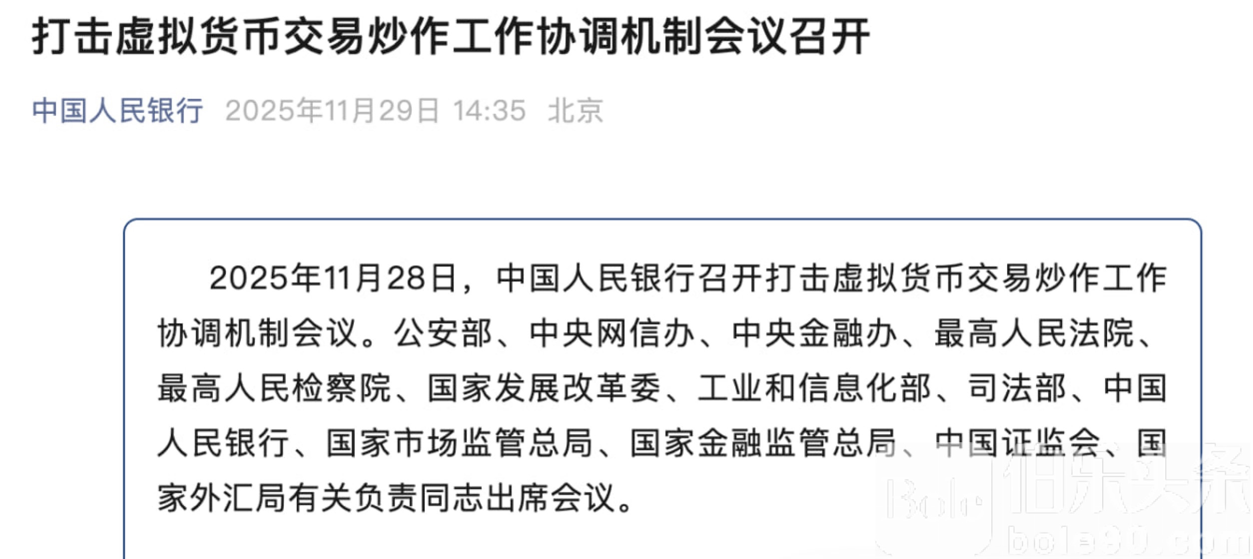伯乐头条专讯:中国央行等十三个国家部委再度联手,对虚拟货币交易炒作释放最强监管信号。会议明确指出——虚拟货币不具有法偿性,不得作为货币使用,所有相关业务均属于非法金融活动,各类违法风险正加速向社会渗透。