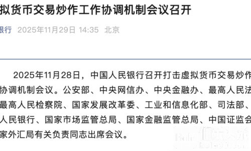 据央行官网消息,11月28日,中国人民银行召开打击虚拟货币交易炒作工作协调机制会议。公安部、中央网信办、中央金融办、最高法、最高检、发改委、工信部、司法部、市场监管总局、金融监管总局、证监会、外汇局等十三部门负责人齐聚一堂,罕见大规模合力出击。