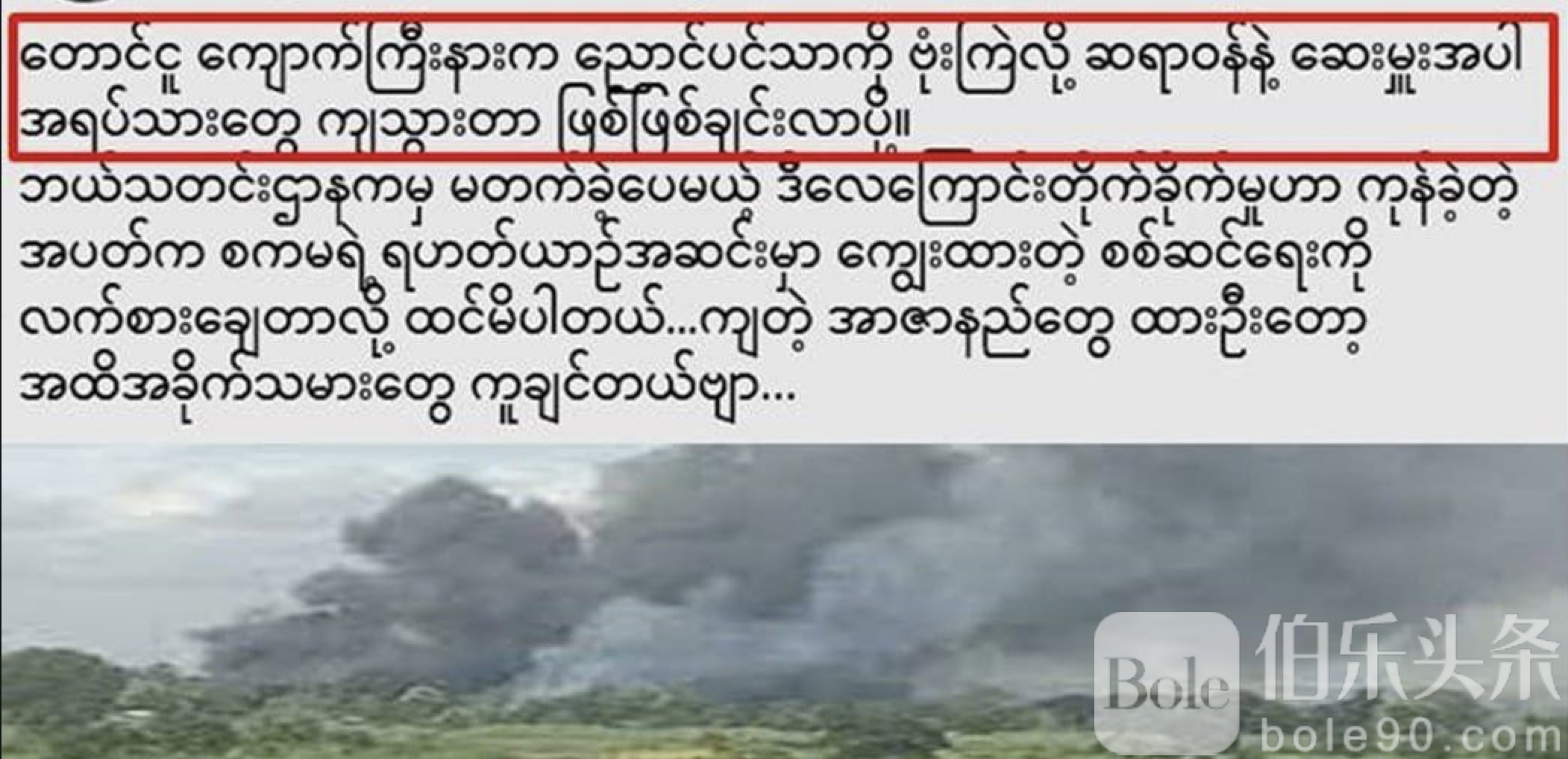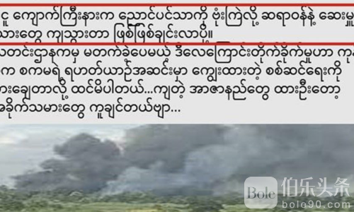 伯乐头条专讯:位于岛武皂技地区鸟彬搭雅村的KNU/PDF武装营地遭缅甸政府军战机突袭,战机投下炸弹并使用导弹攻击,现场爆炸持续不断,造成武装组织的医生、护士及多名KNU/PDF成员大量死亡。