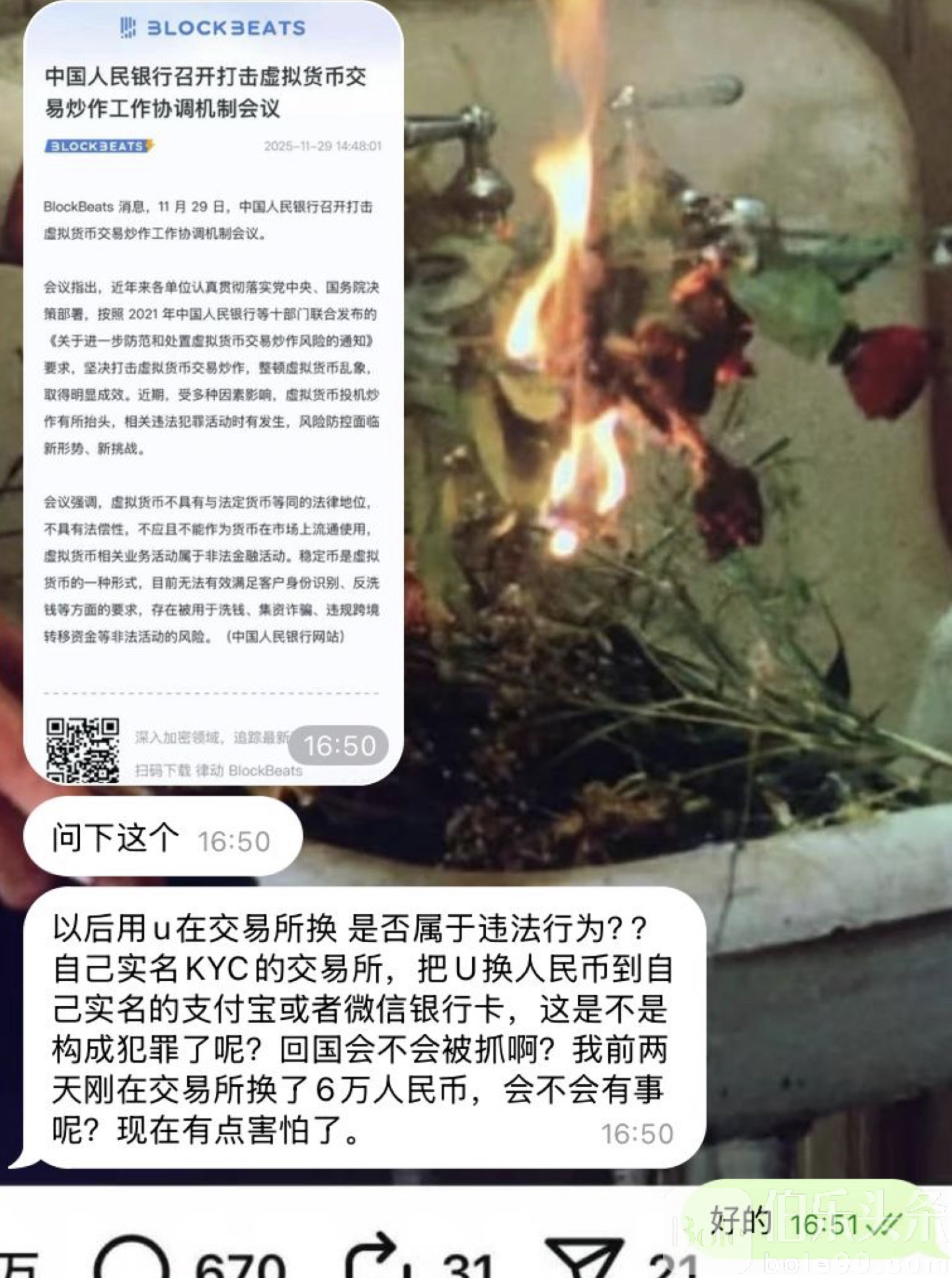 更刺痛人心的是参与者真实的焦虑。有人疑惑:“我用实名 KYC 的账户,把 U 换成人民币打进自己实名微信或银行卡,这是不是构成犯罪?”也有人更直接:“回国会不会被查?会不会被抓?”