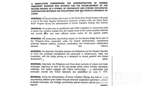 决议中提到,Bucana 桥象征中菲两国合作与互信,体现了长期历史交往和正式建交以来的友好关系。从文化交流到经贸往来,再到战略伙伴合作,中菲关系在杜特尔特任期内持续深化,桥梁建设正是这一合作的生动体现。