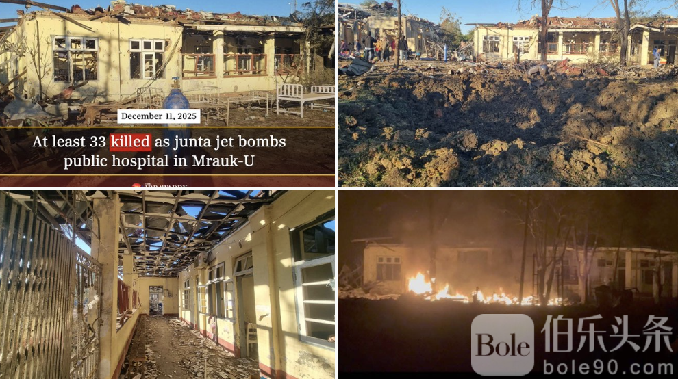 伯乐头条专讯:缅甸再爆严重冲突,若开州一座医院遭空袭直接摧毁,造成至少33人死亡、76人受伤,惨况震动国际社会。据多家缅甸当地媒体报道,事件发生在若开州古城实兑(又称“马乌”)市,属于靠近孟加拉国边境的冲突高发区域。此次空袭由缅甸军方发动,直接命中当地一家医院,导致整栋建筑严重损毁,大量平民、患者与医护人员伤亡,被形容为“无处可逃的血腥一夜”。