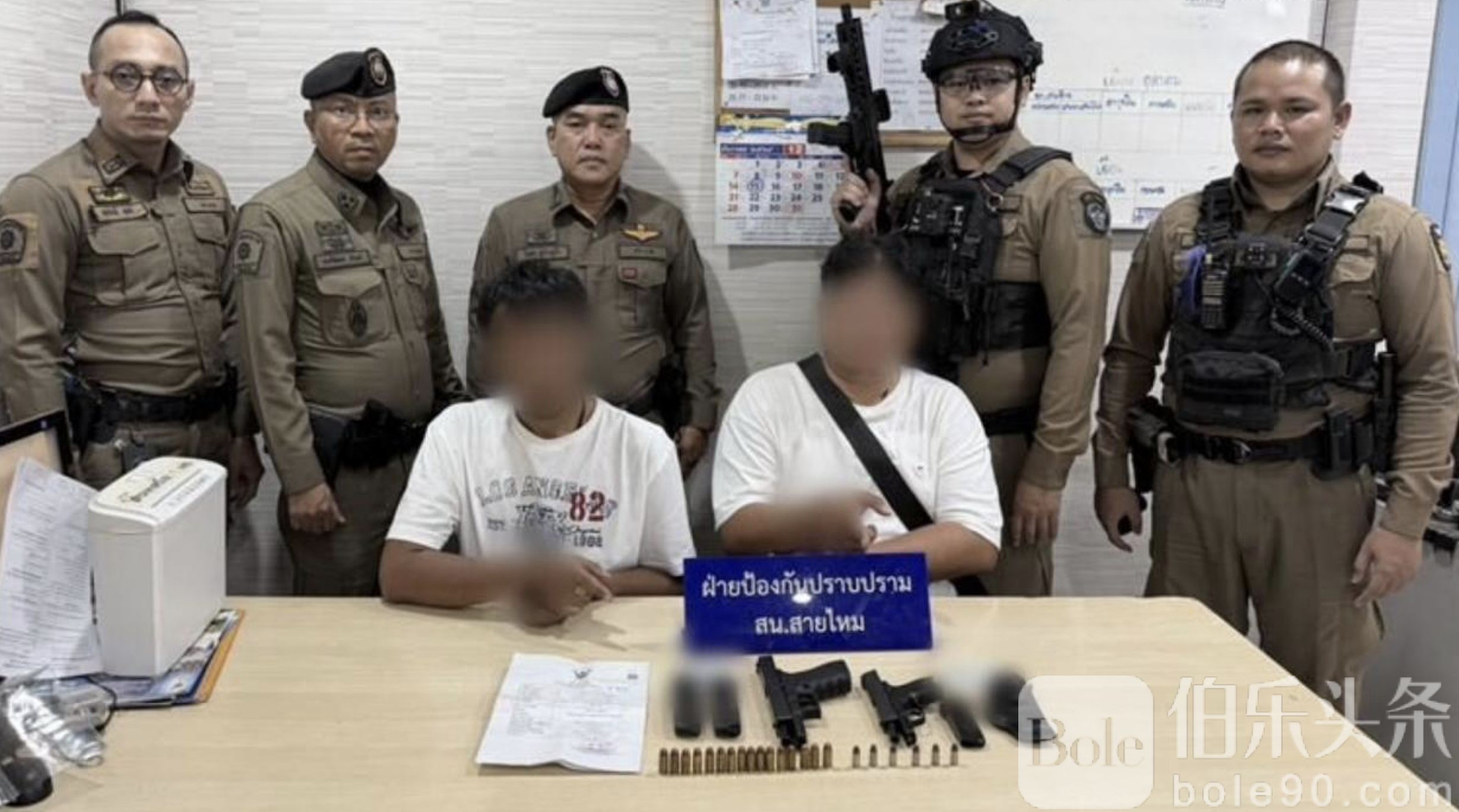 伯乐头条专讯:赛迈警方深夜执行治安巡逻时,拦查一辆可疑车辆,结果意外查获两把已上膛的半自动手枪与22发子弹,当场将车内两名男子逮捕。根据赛迈警察局特警透露,事发于凌晨时分,警方在治安薄弱区例行巡逻时注意到一辆汽车行迹诡异。警员上前拦查后,发现车内两名男子——42岁与43岁,神色紧张、言行闪烁,引发警方进一步警觉。