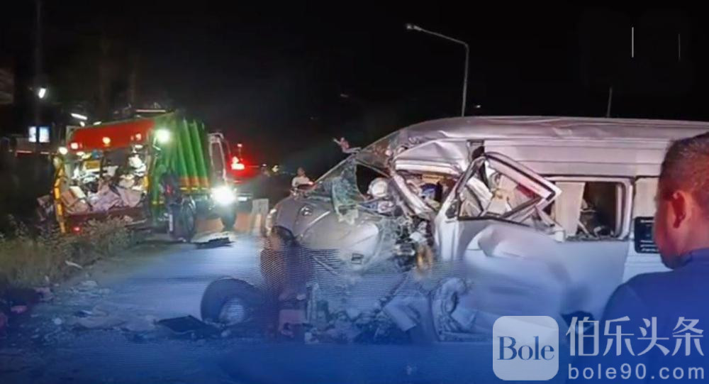伯乐头条专讯:泰国拉永府12日凌晨发生一起惨烈交通事故,一辆高速行驶的货车追尾当地垃圾车,导致一名清洁工当场身亡,现场血肉模糊,其余两名同事受惊未受重伤。
