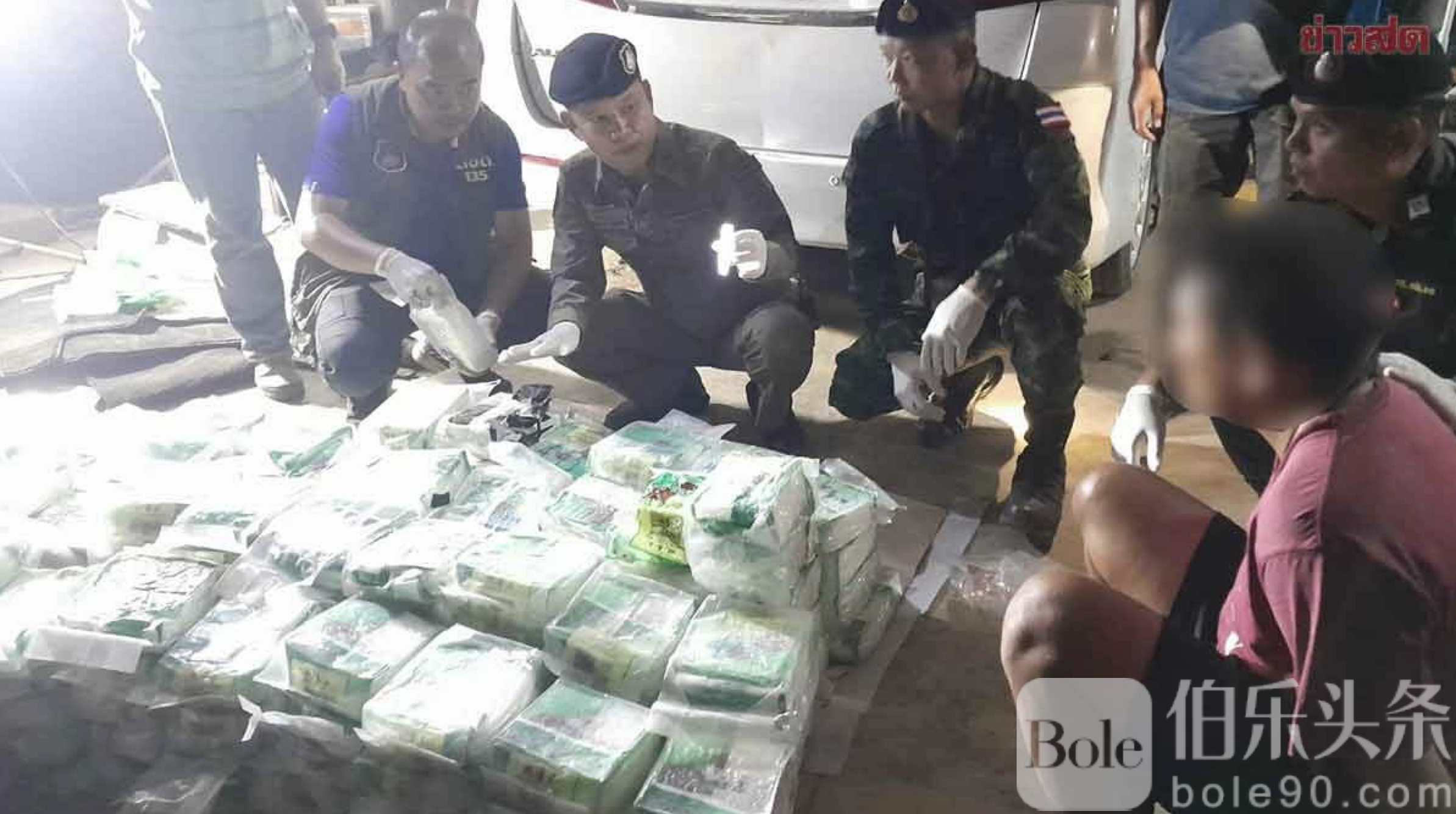 伯乐头条专讯:12月13日晚9时,泰国警方在北碧府通帕蓬县三岔路口检查站展开联合执法行动,当场拦下一辆形迹可疑的白色丰田埃尔法豪华轿车,意外揭开一起金额高达3640万泰铢的重大毒品走私案。