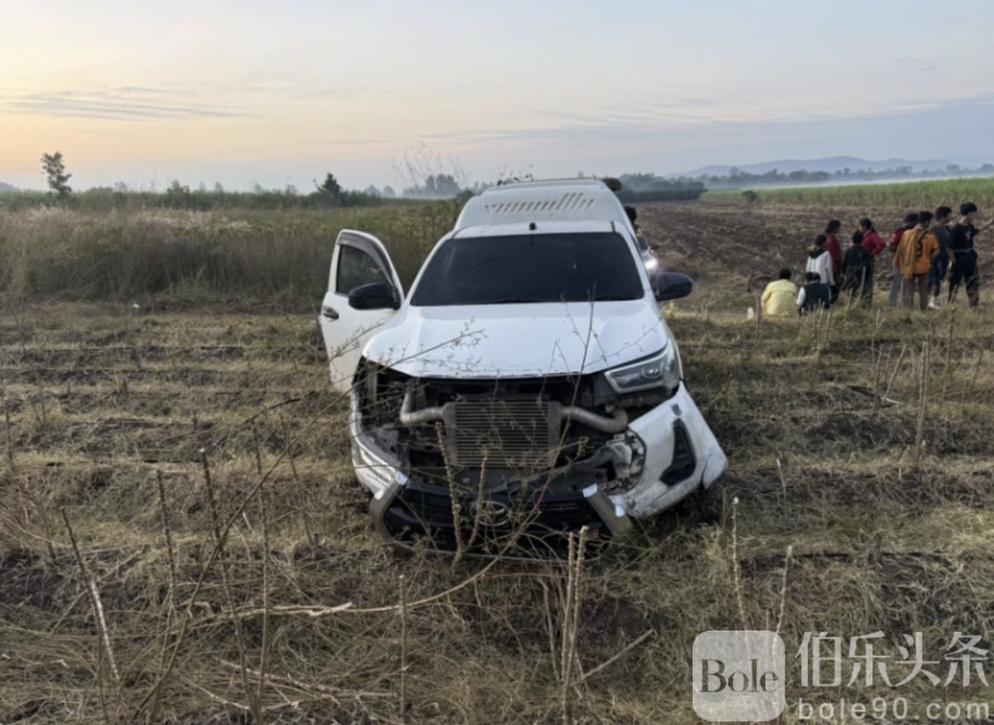 伯乐头条专讯:泰国甘榜县近日发生一起惊险的偷渡事件,一辆满载非法外劳的白色丰田皮卡在高速追捕过程中冲入甘蔗田失控,司机弃车逃逸,车内外劳见状纷纷跳车进入田间和丛林逃散。经警方现场指挥和喊话,最终成功控制全部19名外劳及随行人员。