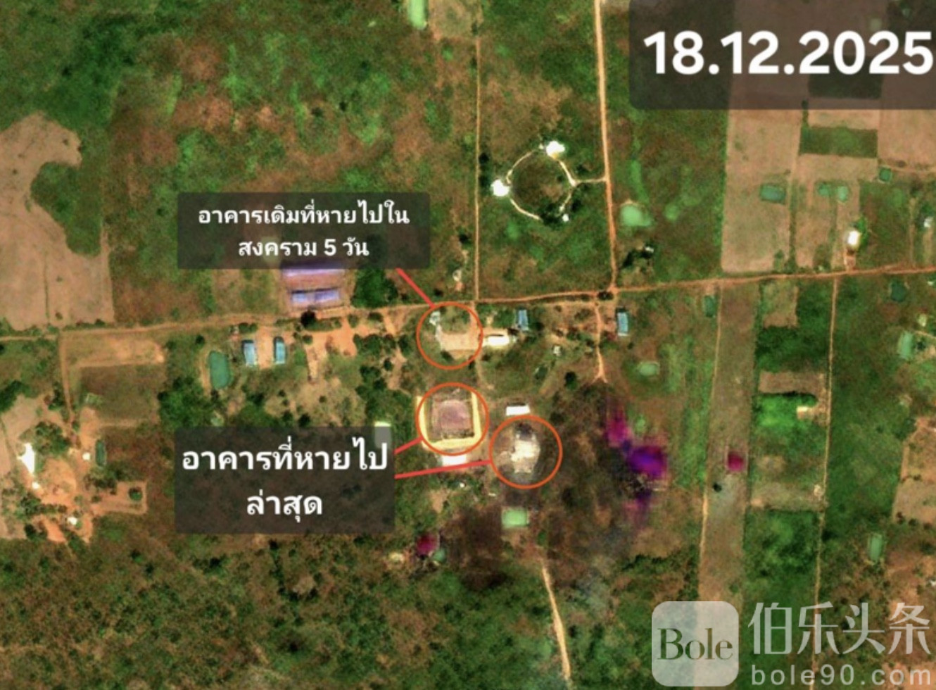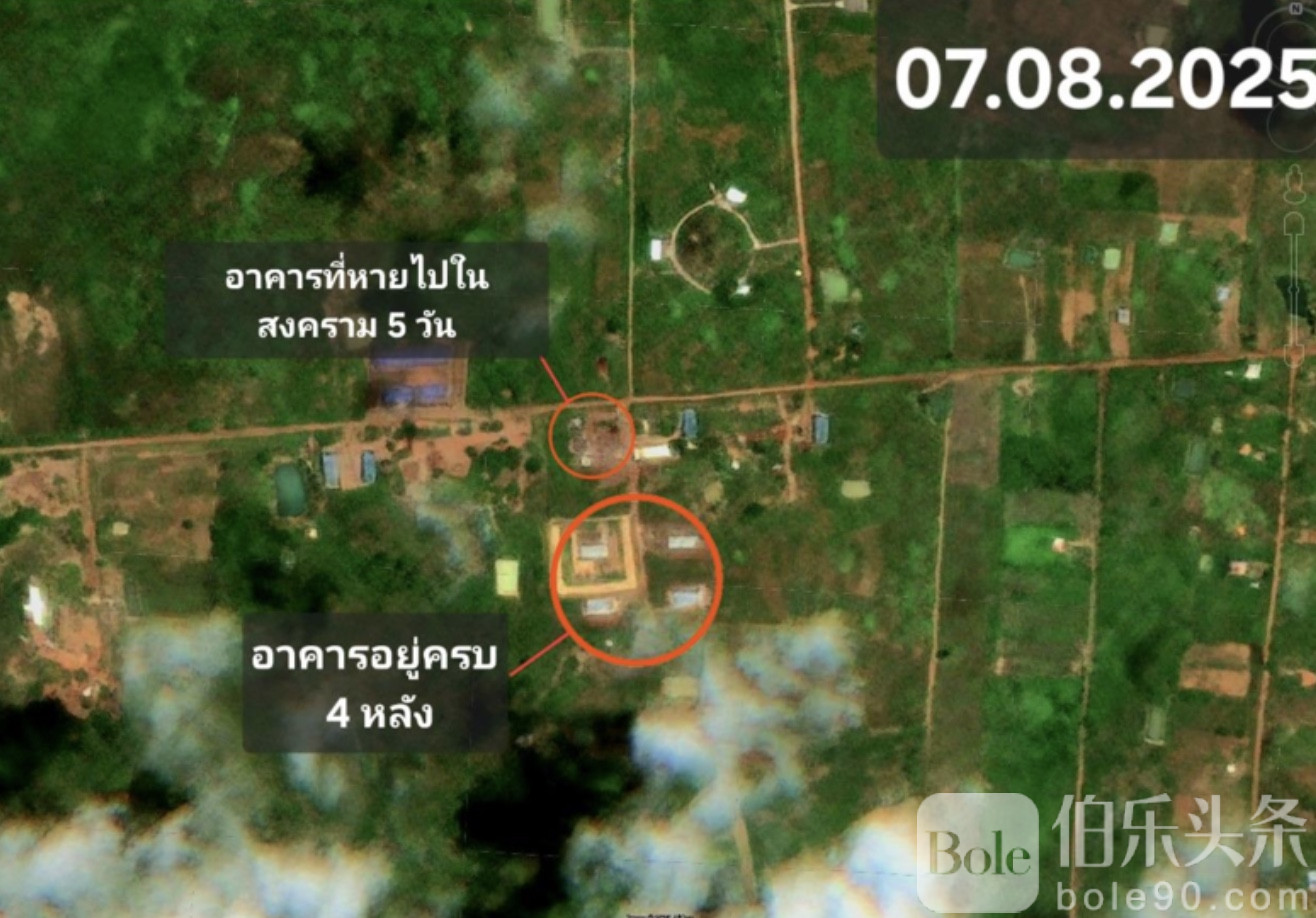 伯乐头条专讯:泰国网络社群近日公开最新卫星影像,显示柬埔寨一处重要军械储存设施再遭重创——原有建筑中,又有两栋在近期行动后“从画面中消失”。相关信息由知名页面披露后,引发外界对边境军事态势的持续关注。