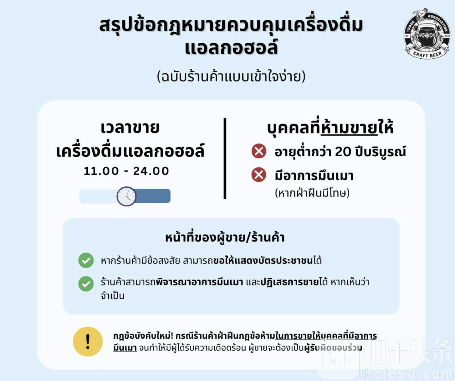 伯乐头条专讯:泰国新版《酒精饮料管制法》(第二号)佛历2568年(公历2025年)已正式生效,新法力度明显升级,酒吧、餐厅、啤酒屋若向明显醉酒者售酒,可能要为后果共同买单,引发业界高度关注。根据新法规定,经营场所仍可在每日11时至24时合法销售酒精饮料,但新增明确禁止条款,重点直指“向不该卖的人卖酒”的问题。