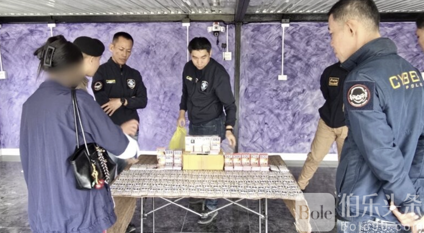 伯乐头条专讯:泰国北碧府警方12月19日成功突袭查封一处大型地下彩票窝点,抓获30岁女老板雨菲(化名),其经营的网络名为“巨额财富屋”,销售范围覆盖曼谷邦凯区及全国各地。此次行动中,警方缴获各类彩票3,733张,包括“财富母屋”、“吉祥富屋”和“金银袋屋”,以及用于管理网络的手机等电子设备。