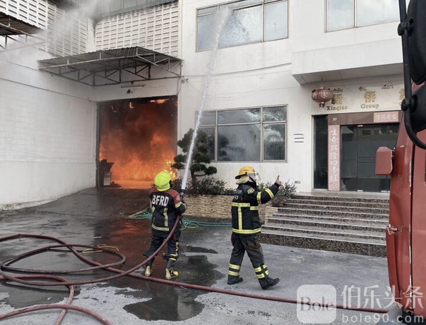 伯乐头条专讯:12月20日下午,泰国曼谷邦坤天区突发一起仓库火灾事故,一处大型商品仓库起火后浓烟滚滚,现场一度传出坍塌风险,消防部门紧急出动,全力控制火势。