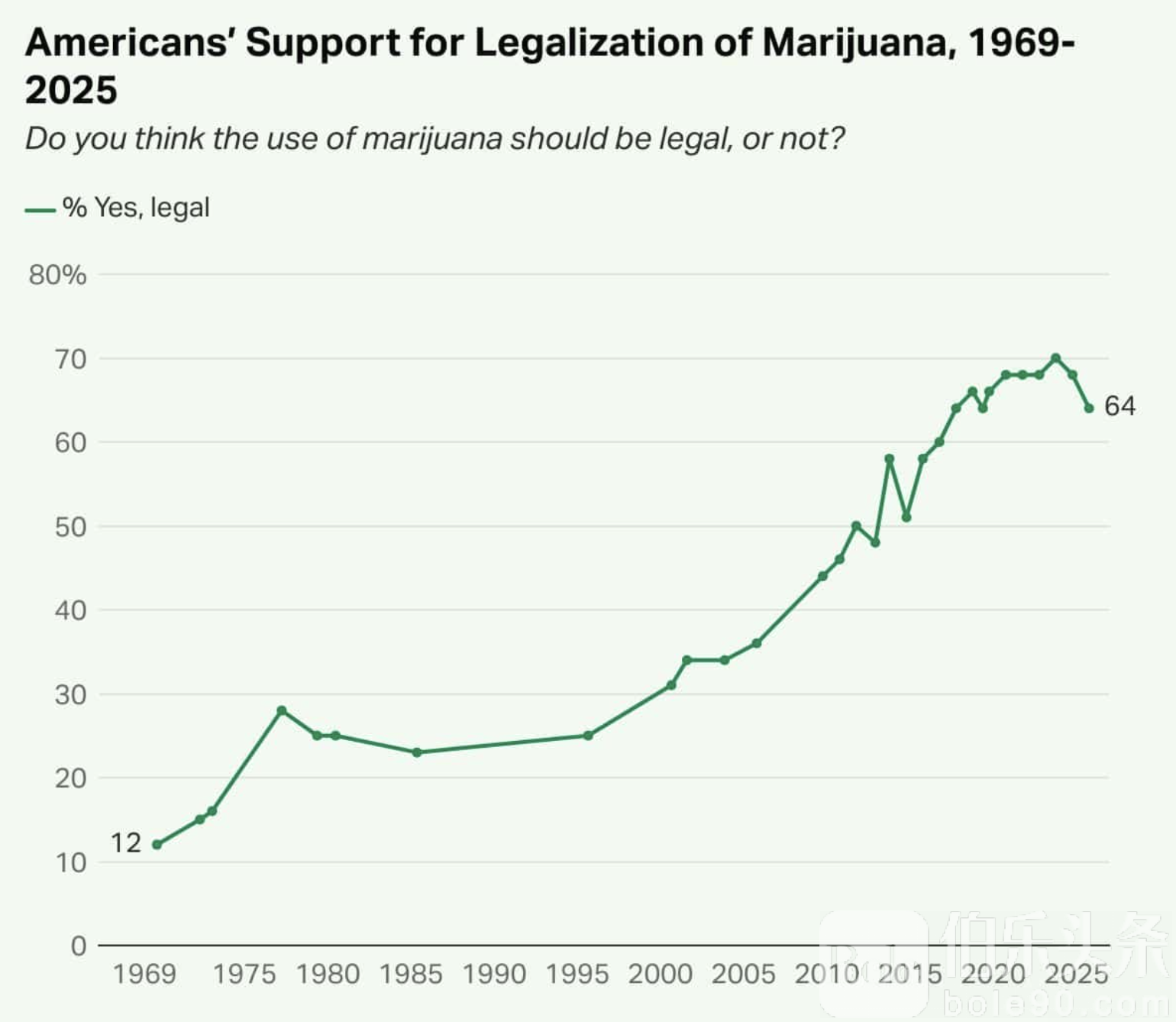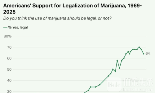 最新盖洛普民调显示,2025年有64%的美国民众支持大麻合法化,尽管共和党选民中的支持度近期出现下滑。分析认为,特朗普此举不仅是公共政策调整,也带有明显的选举与政治布局考量。