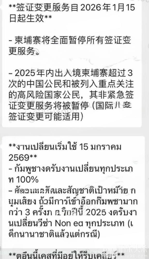 伯乐头条专讯:据多名签证业内人士透露,自 2026 年 1 月 15 日起,泰国签证审核体系将对“曾多次前往柬埔寨”的外国人实施严格限制,中国公民被列为重点风险对象之一。