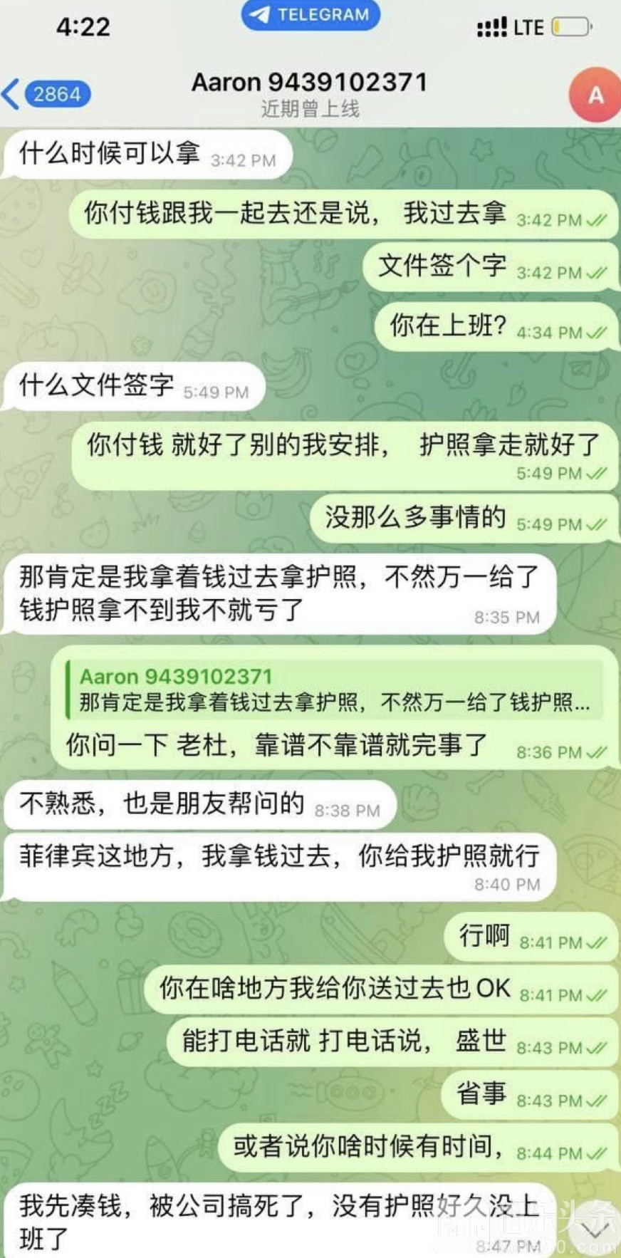 伯乐头条专讯:陕西籍华人王衡,在菲律宾曼达卢永工作多年,代号“南极星”。他曾与公司有过节,而最近通过私人关系请求受害人拿回被扣押的护照,原本约定支付20万披索赎回。