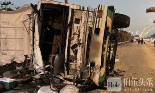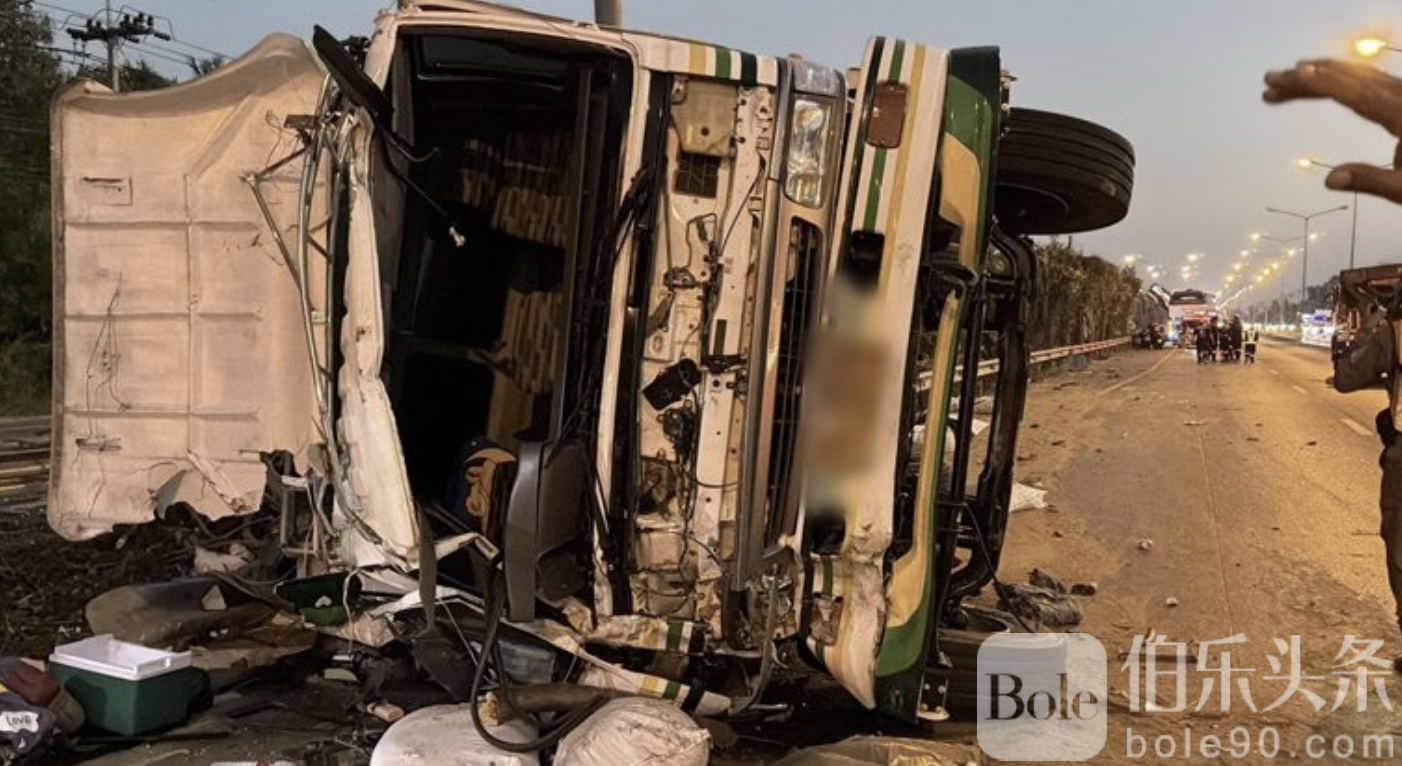事故导致十轮卡车翻覆,车上货物散落路面,而客运巴士则严重受损,车头几乎报废。紧急救援人员迅速赶到现场,将伤者送往附近医院救治。事发路段随即形成长达数百米的交通拥堵,随后又发生连环追尾事故,包括3辆十轮卡车、2辆小轿车以及1辆迷你巴士,现场一片混乱。
